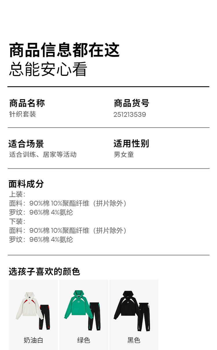 【尺码快选3】安德玛儿童25新款针织套装251113118
