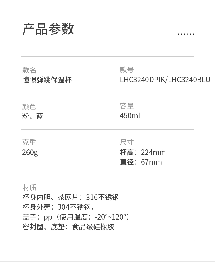乐扣乐扣弹跳保温杯 LHC3240PIK