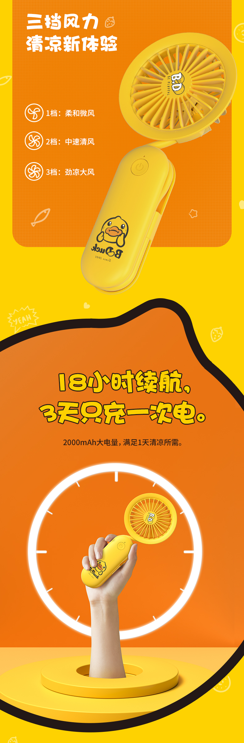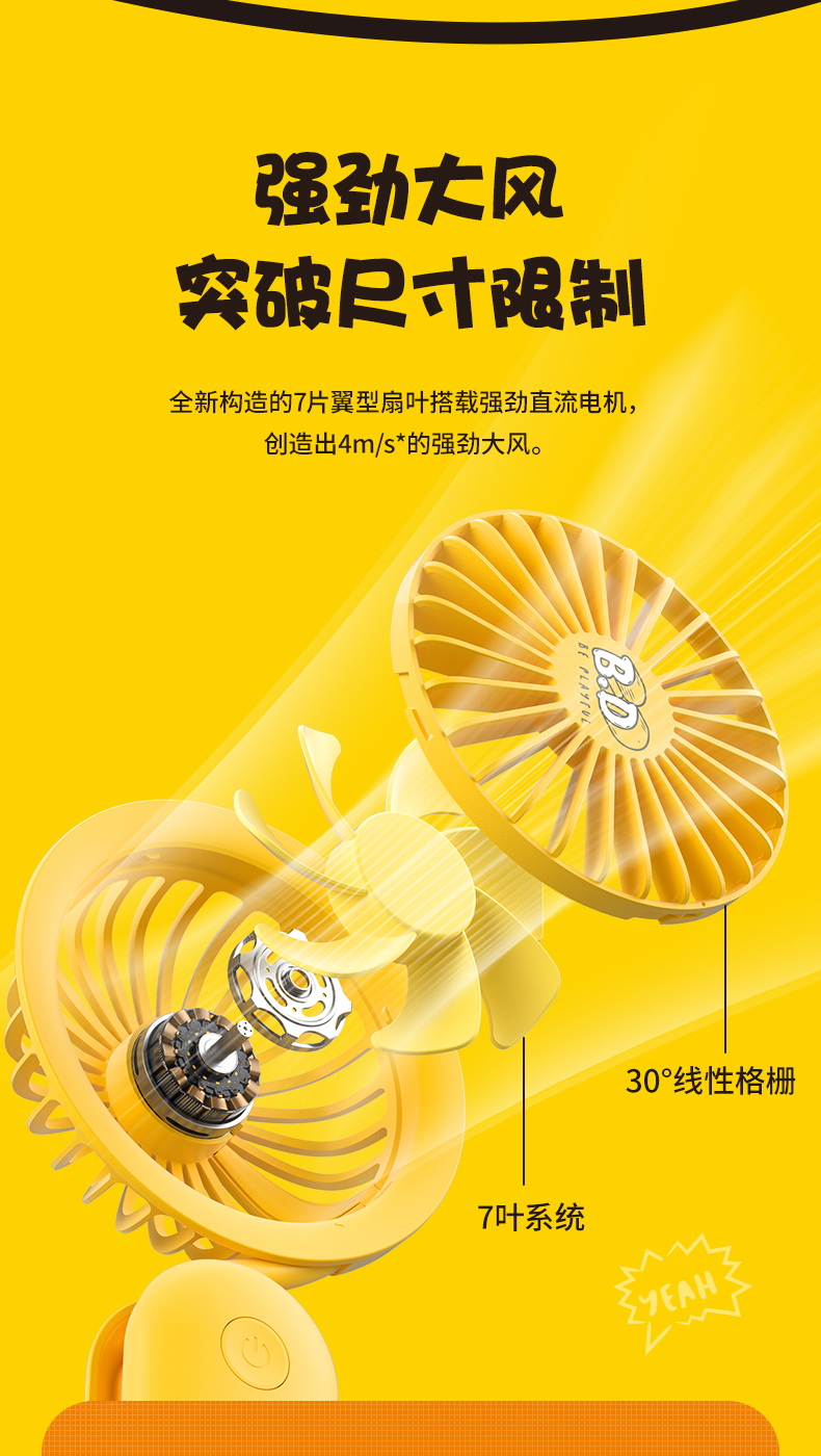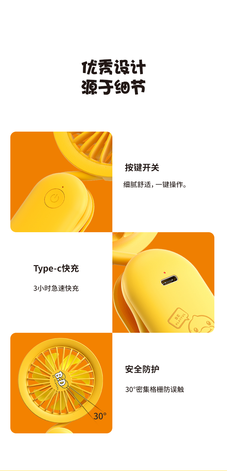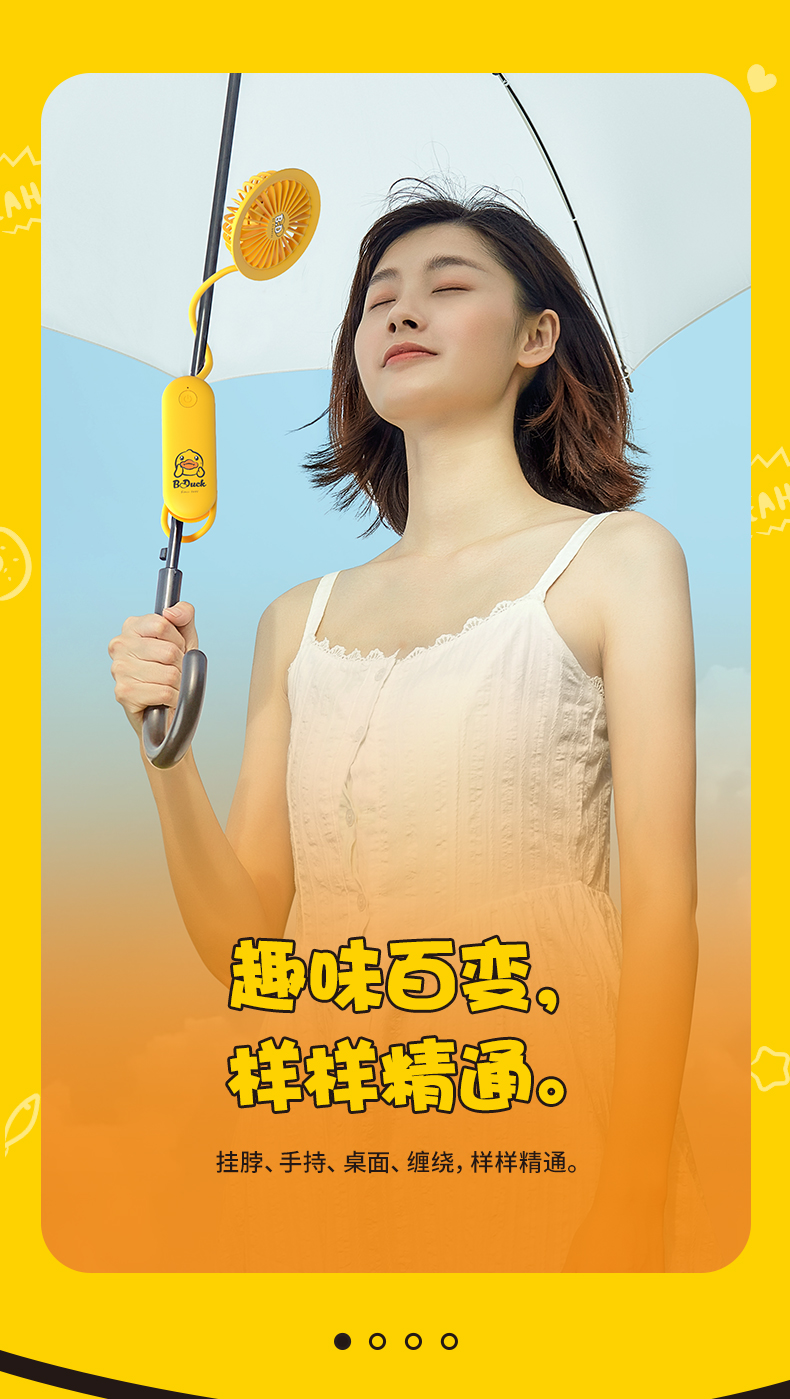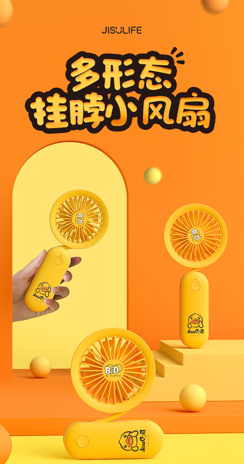几素挂脖小风扇手持便携式迷你随身小型携带挂脖子可充电电风扇USB静音儿童婴儿车折叠手表电扇桌面办公室小【B.DUCK合作款】