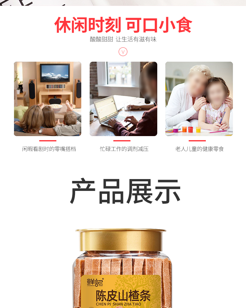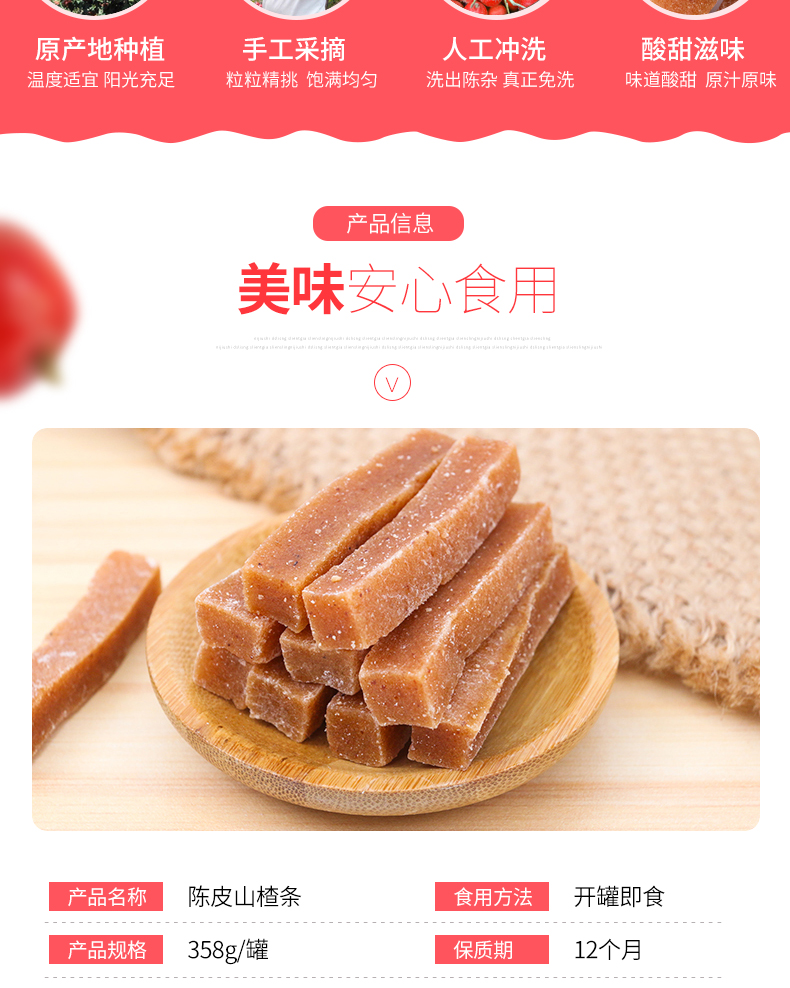 【鲜记】陈皮山楂条 358g 博士帽罐装