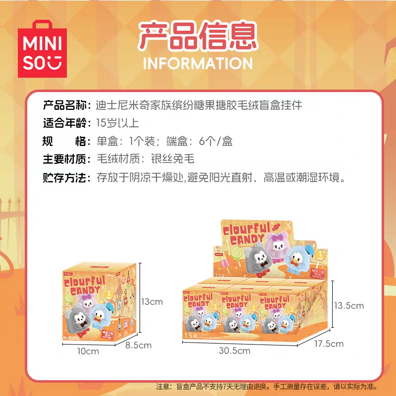 【预售】MINISO名创优品迪士尼米奇家族缤纷糖果搪胶毛绒盲盒挂件