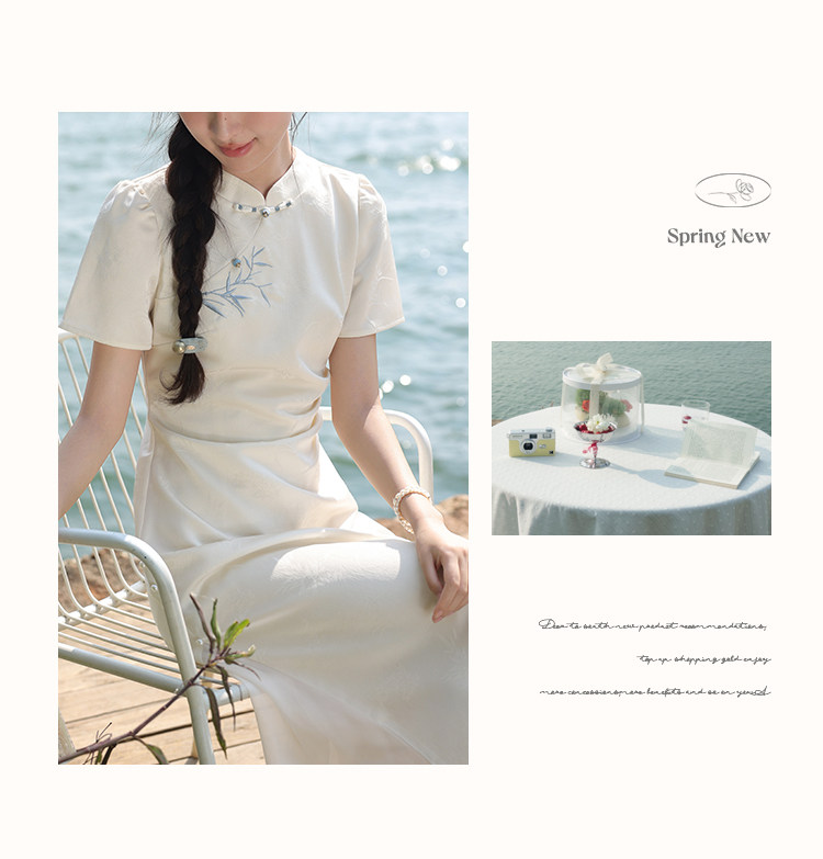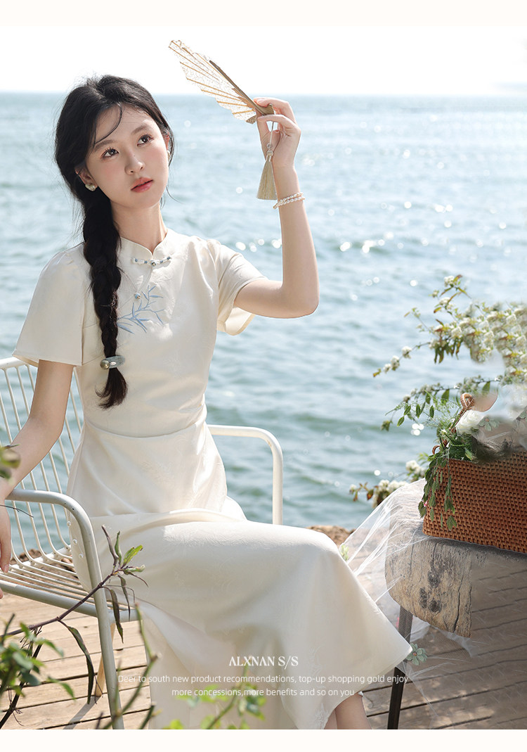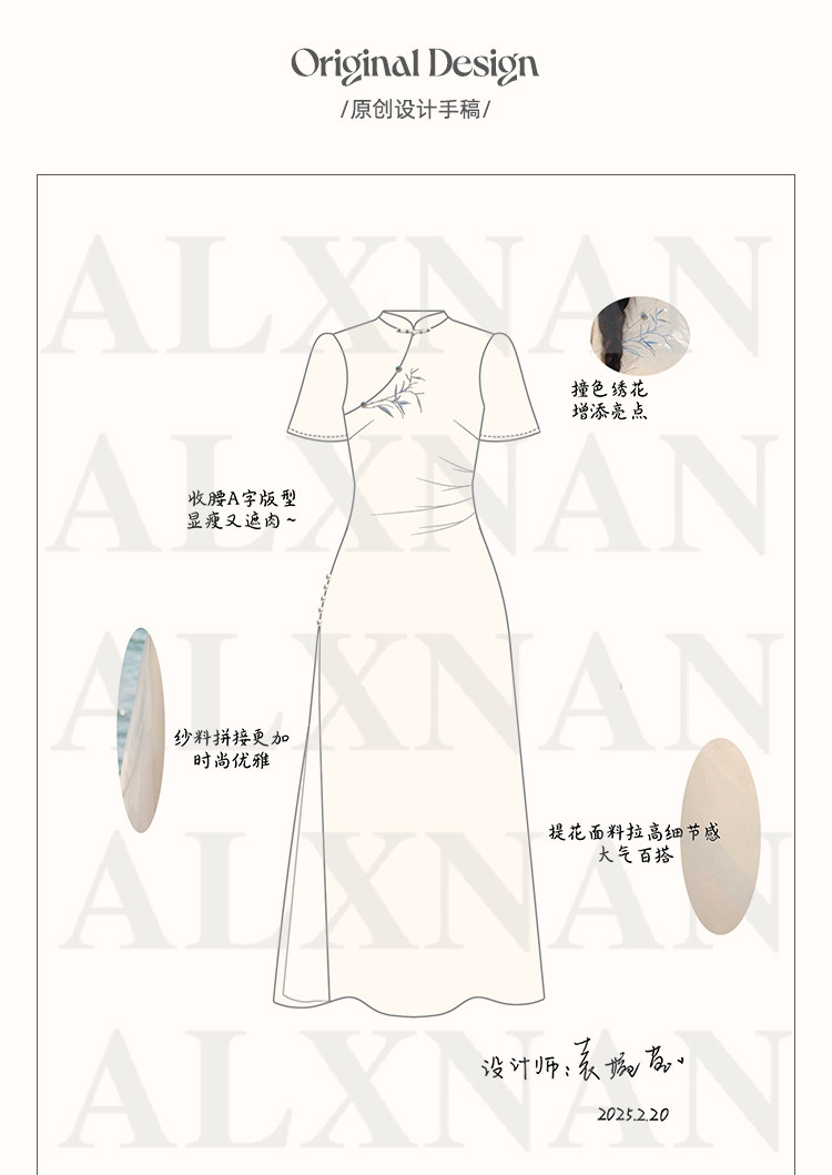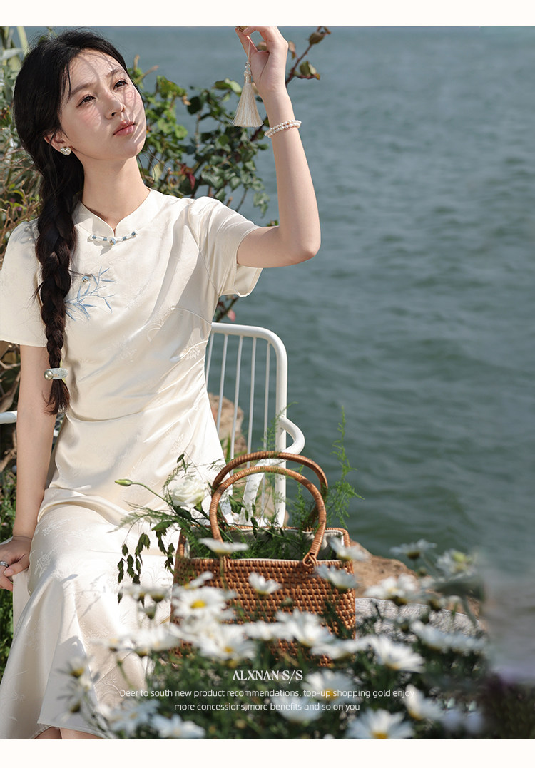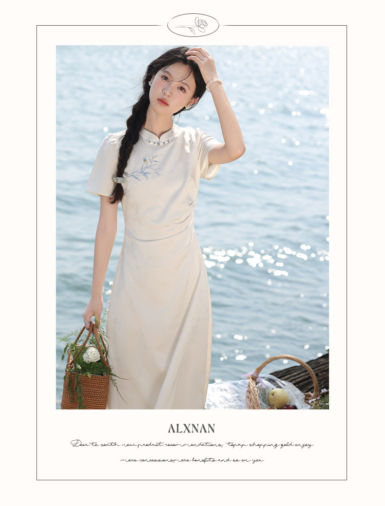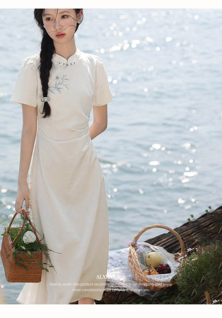 鹿向南「一梦清欢」杏色新中式连衣裙女夏复古改良式旗袍气质长裙
