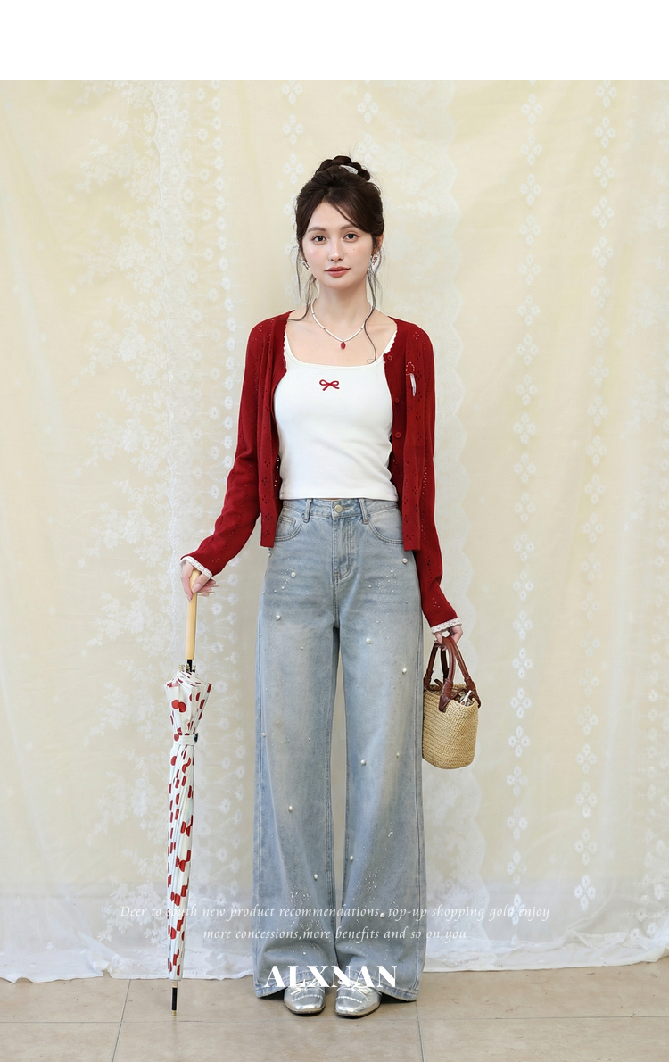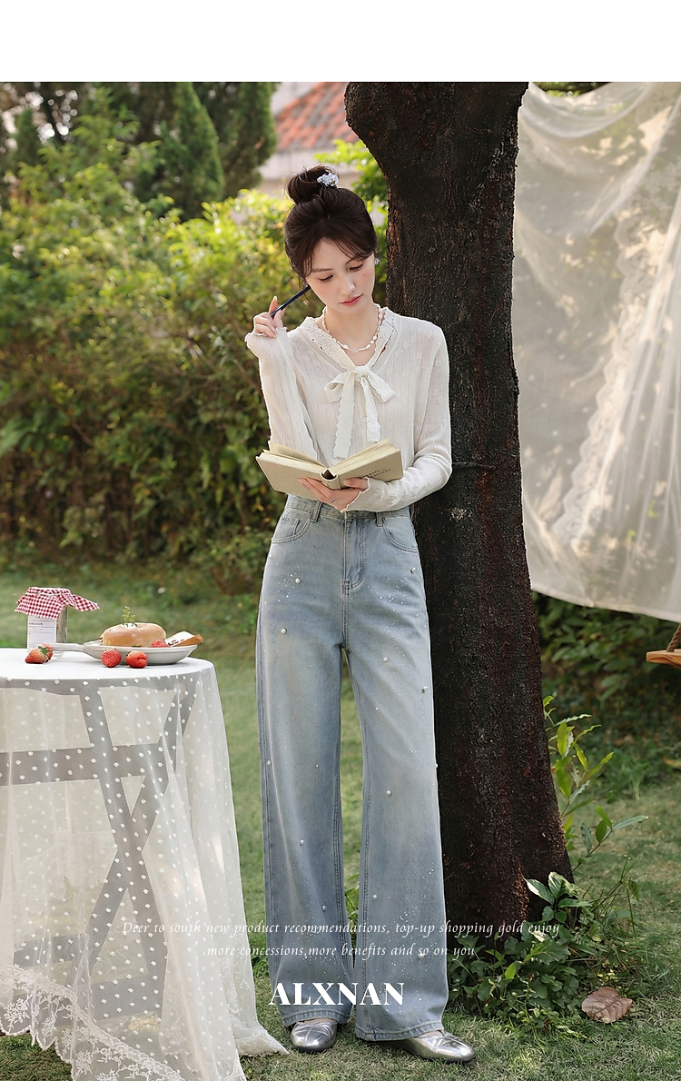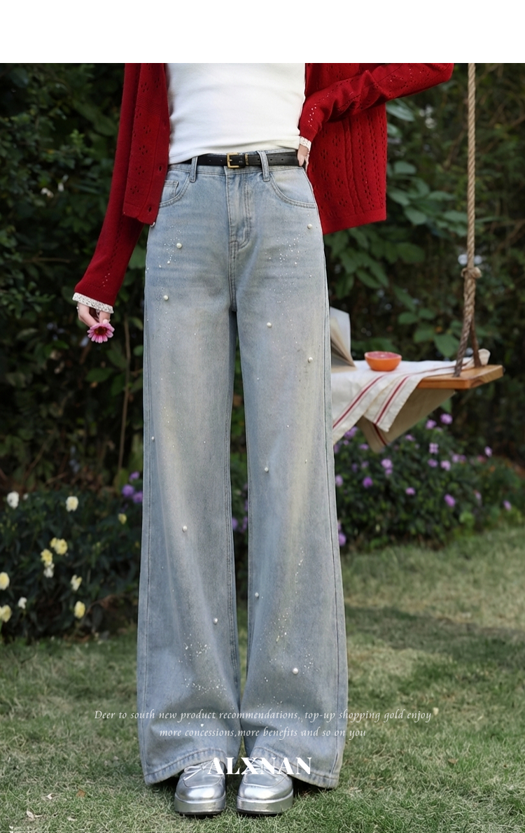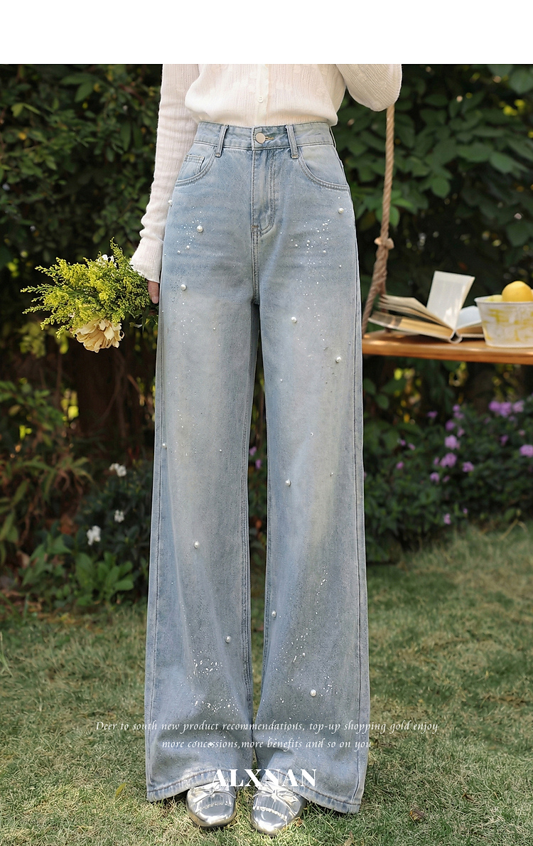 鹿向南「复古絮语」蓝色牛仔裤春季新款时尚百搭设计感直筒长裤女