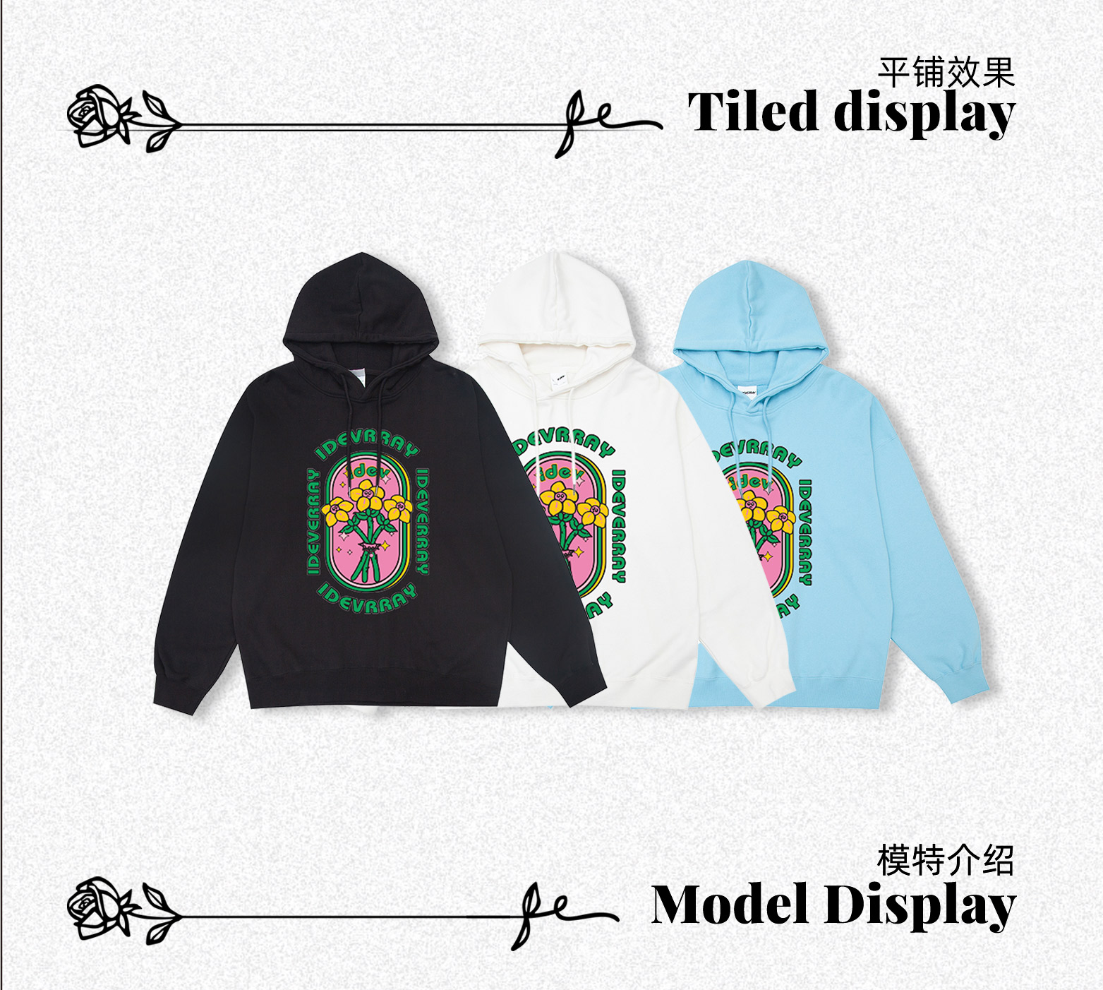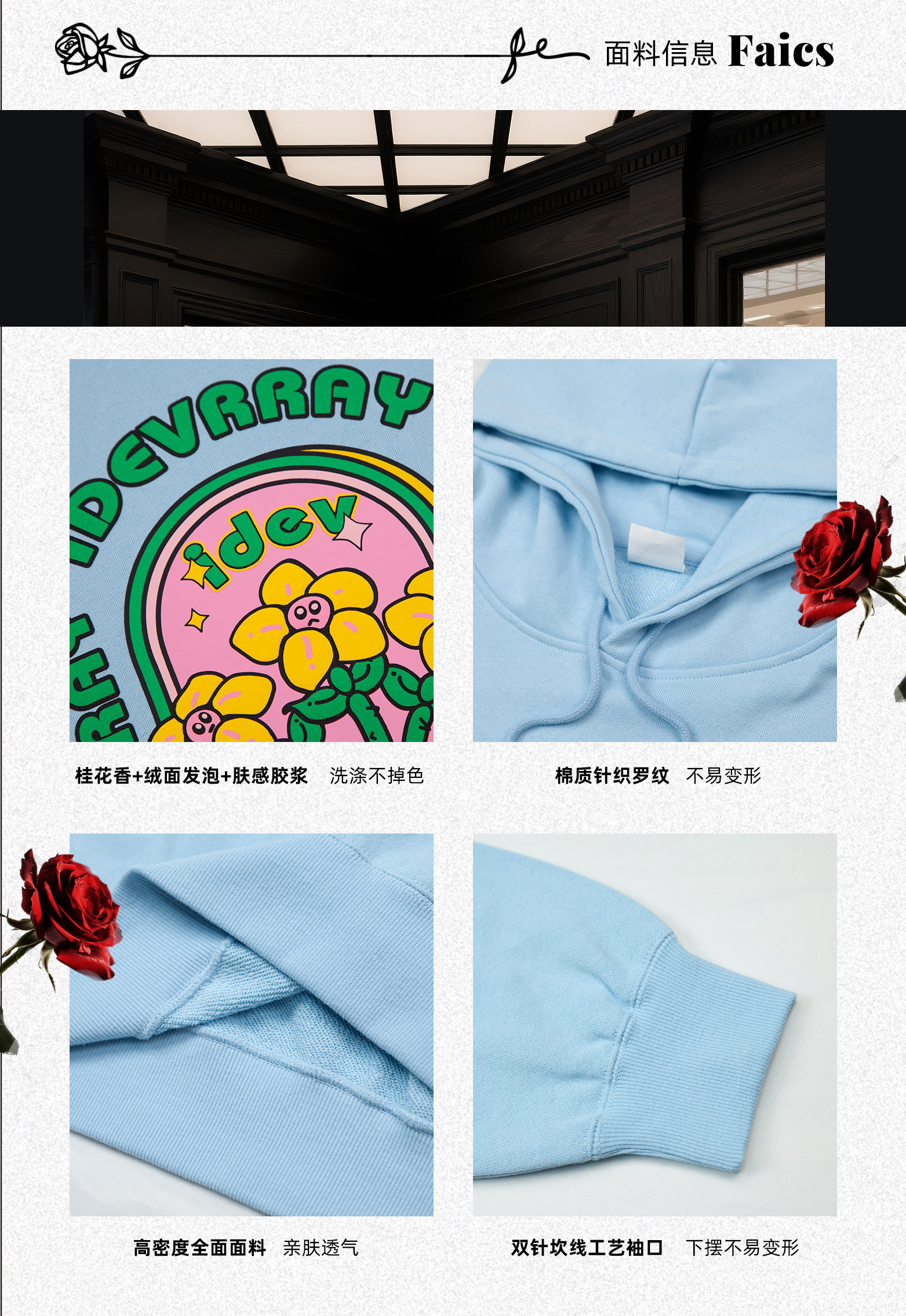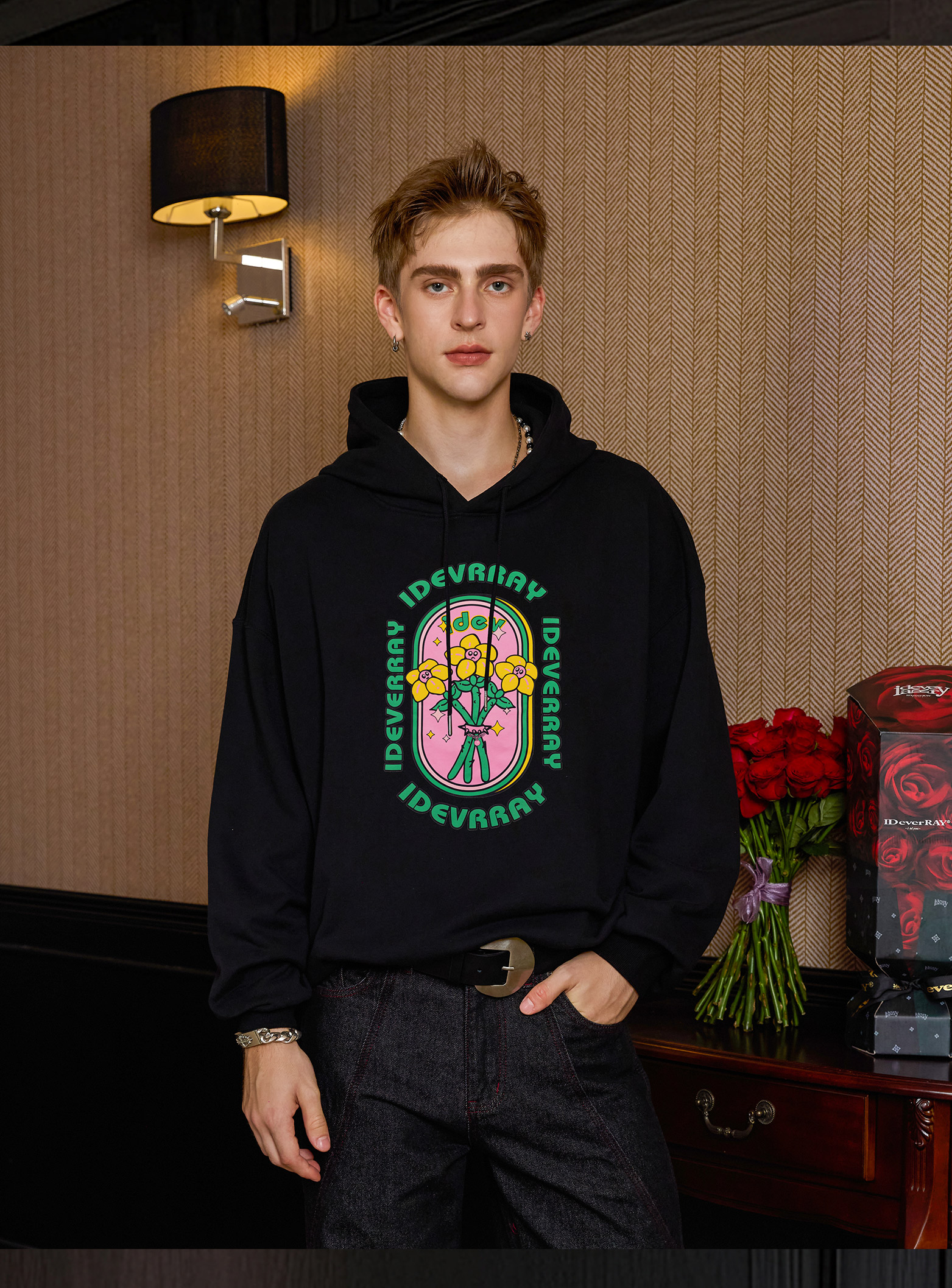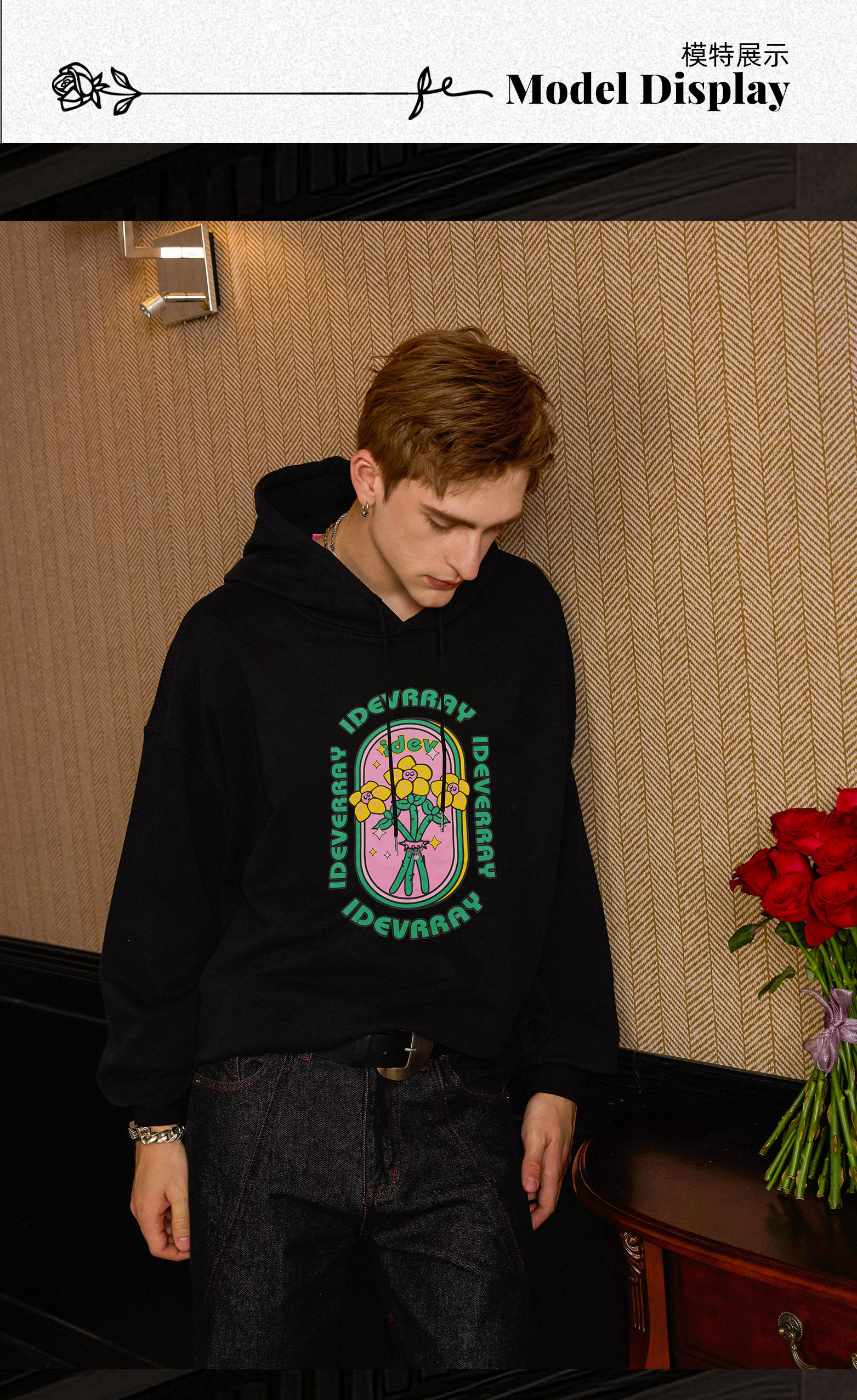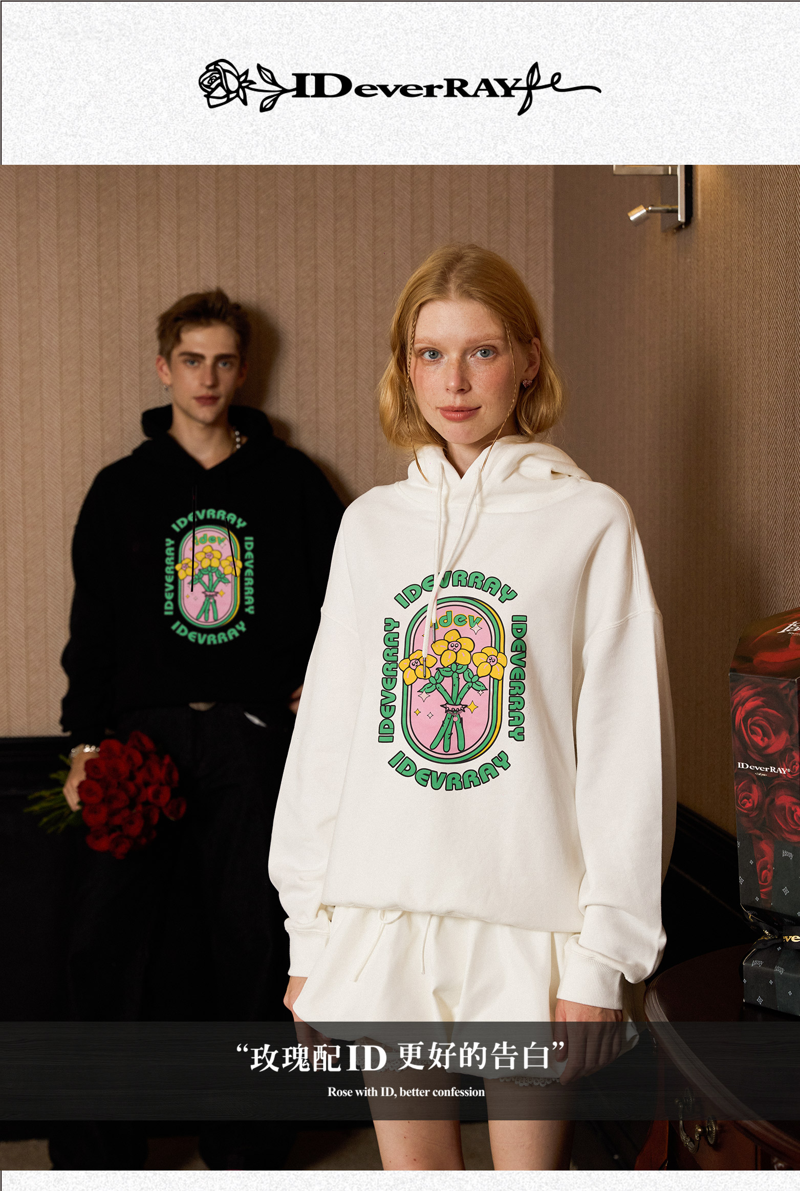 IDEVERRAY情侣同款连帽卫衣宽松长袖秋季法式印花约会穿搭上衣