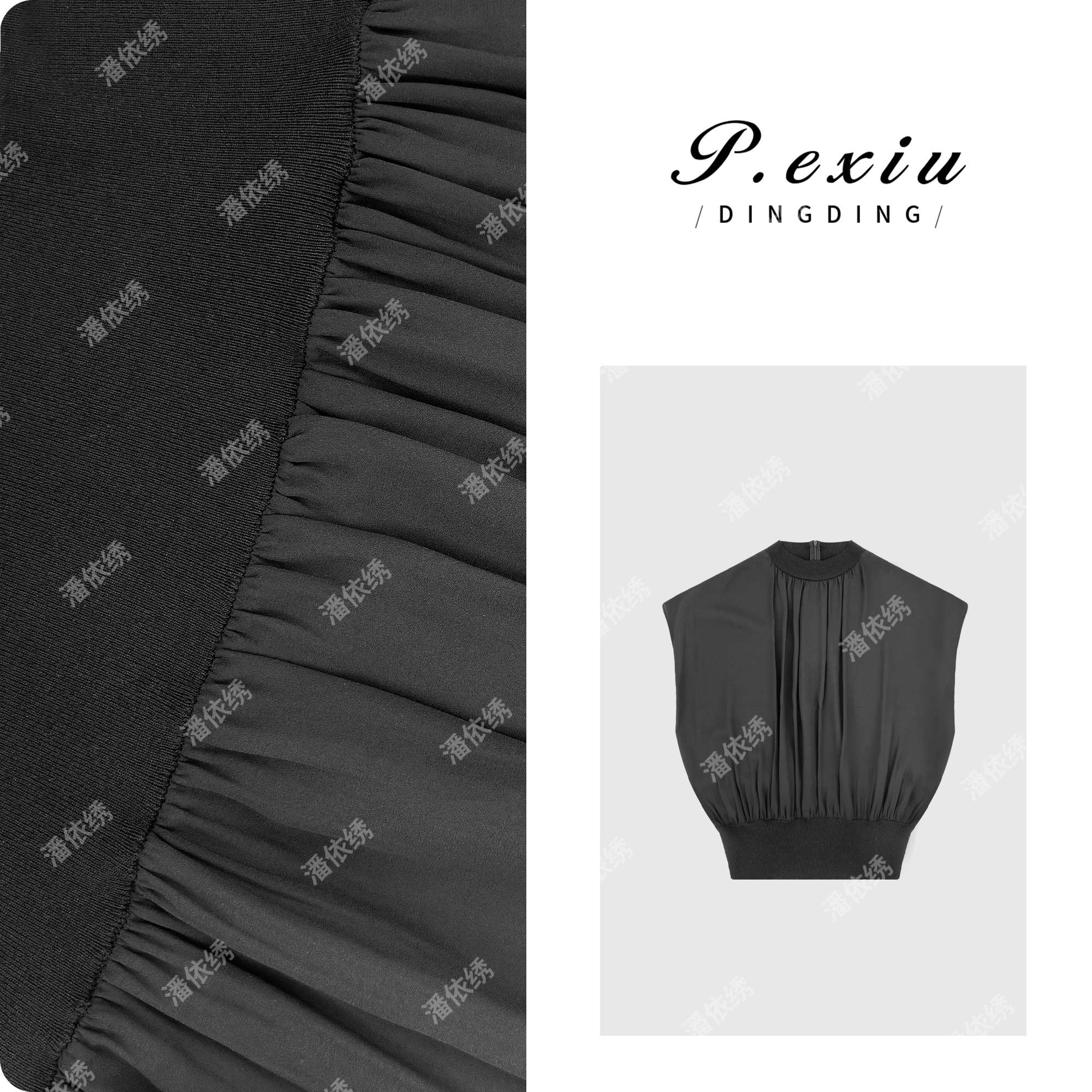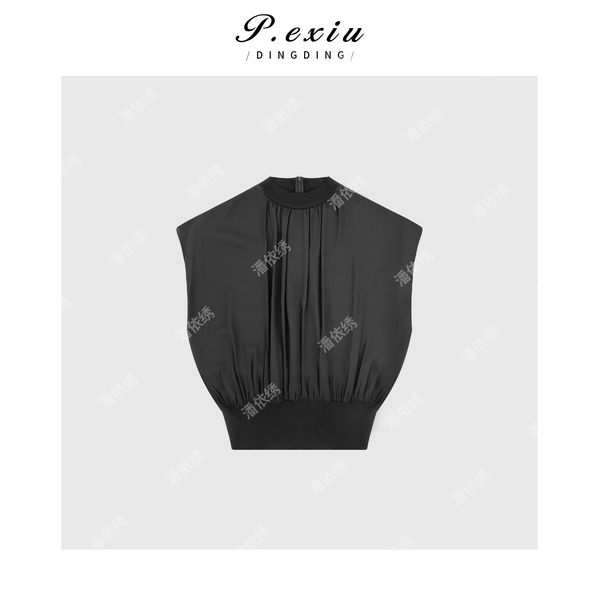 04-1潘依绣丁丁宠粉PanYiXiu/潘依绣法式设计感精致无袖立领拼接衬衫 ZZ0529