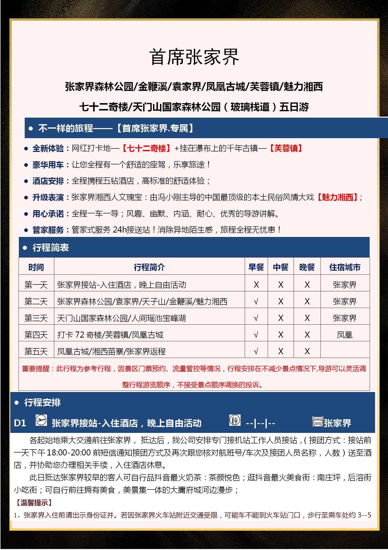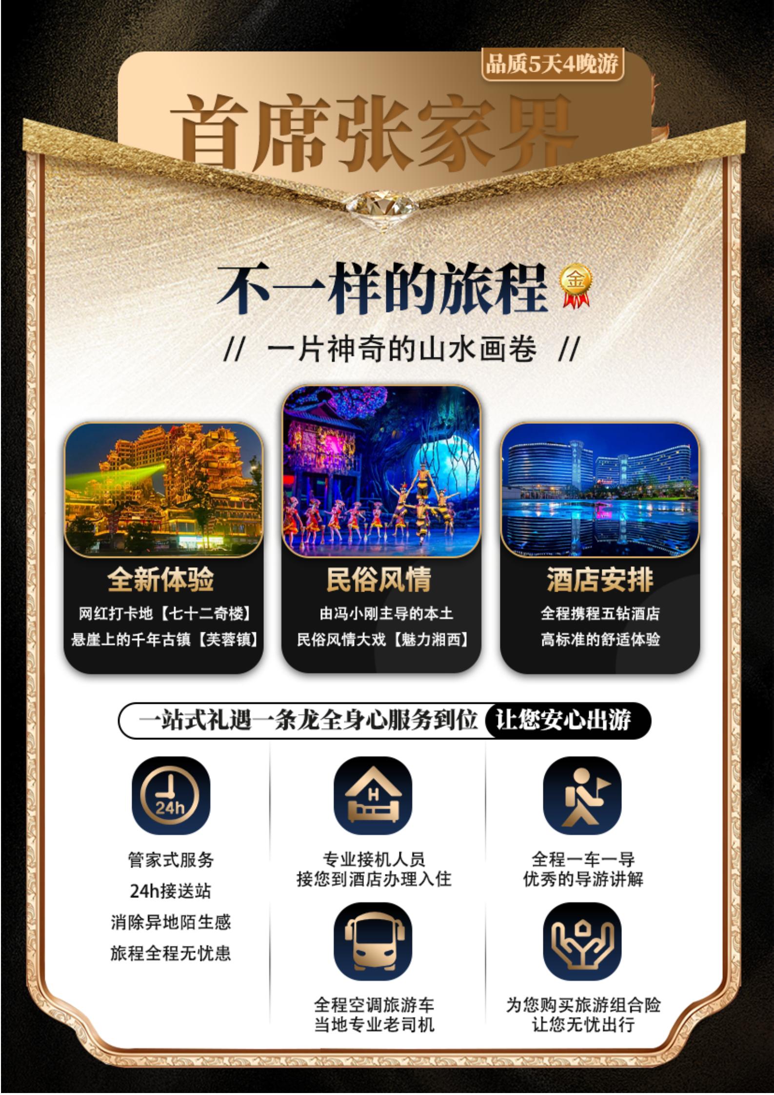 首席张家界(张家界-天门山-凤凰-张家界往返5日不含餐)(2人成团)
