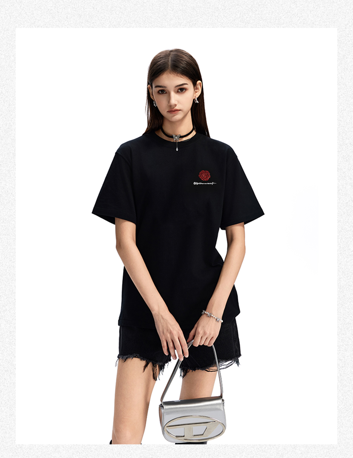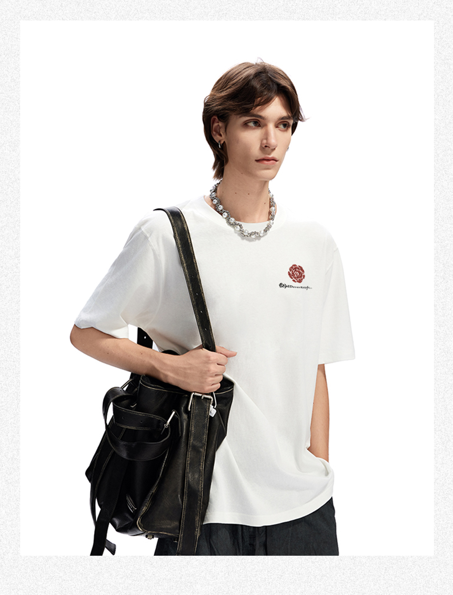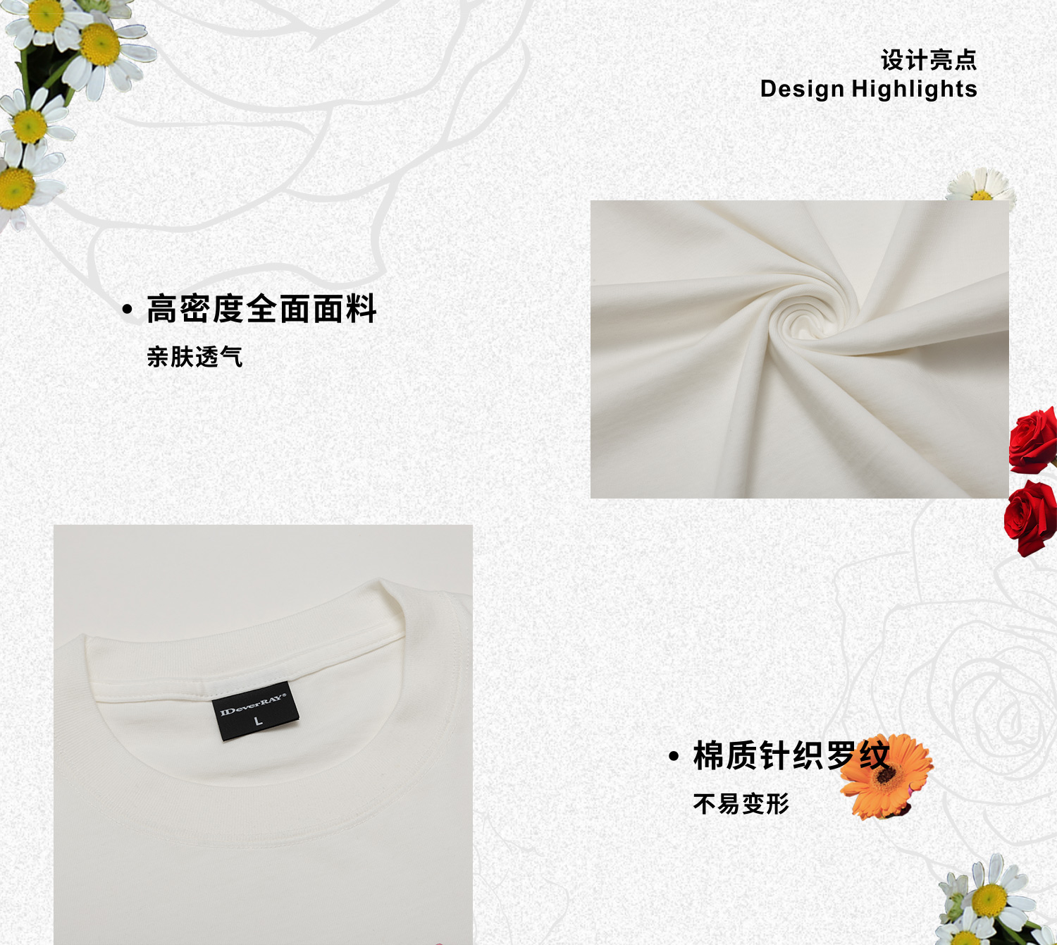 【陈立农同款】IDEVERRAY2025夏季新款花卉字母印花休闲情侣装圆领短袖男宽松t恤21MSL-ID25SSFAT016
