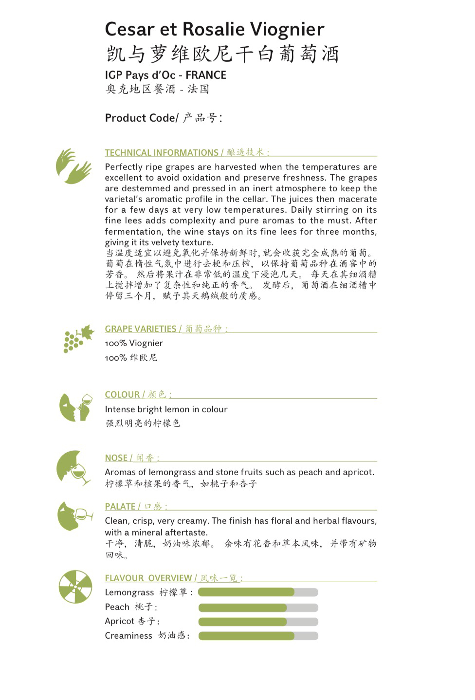 凯与萝维奥涅干白葡萄酒,法国 Cesar en Rosalie, Viognier, Languedoc, France