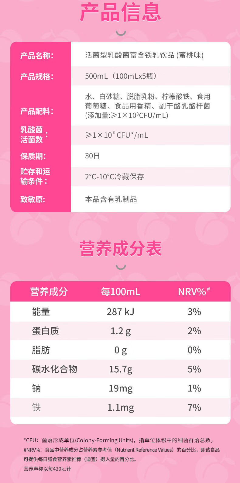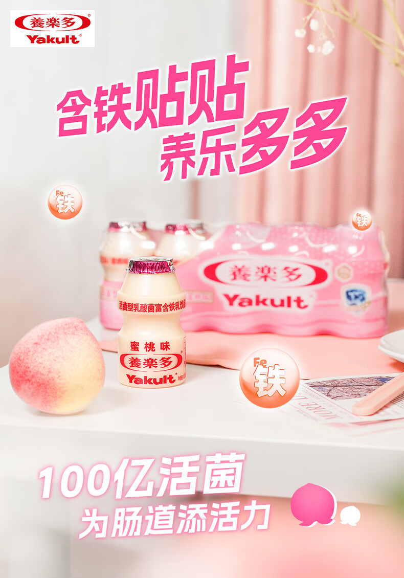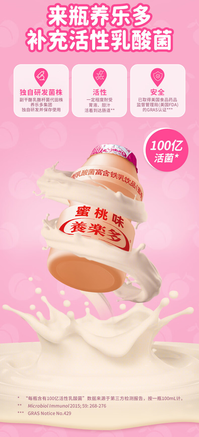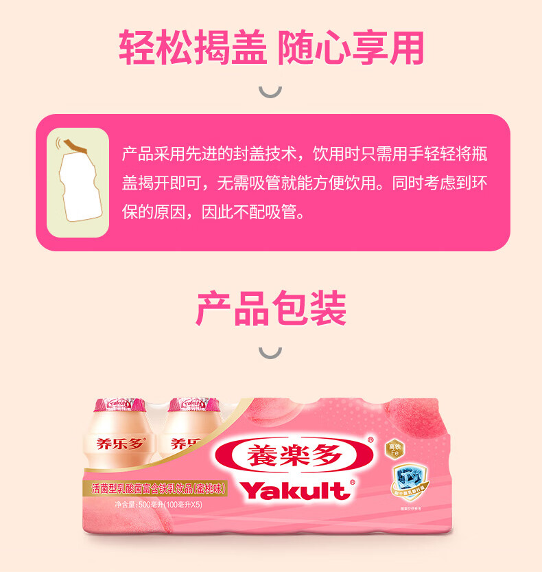 乐多活菌型乳酸菌富含铁乳饮品 蜜桃味100ml*5瓶*4