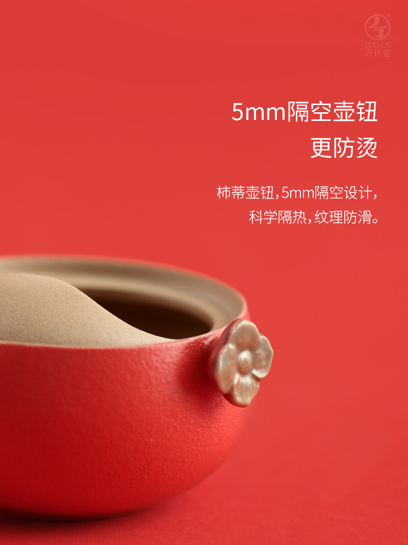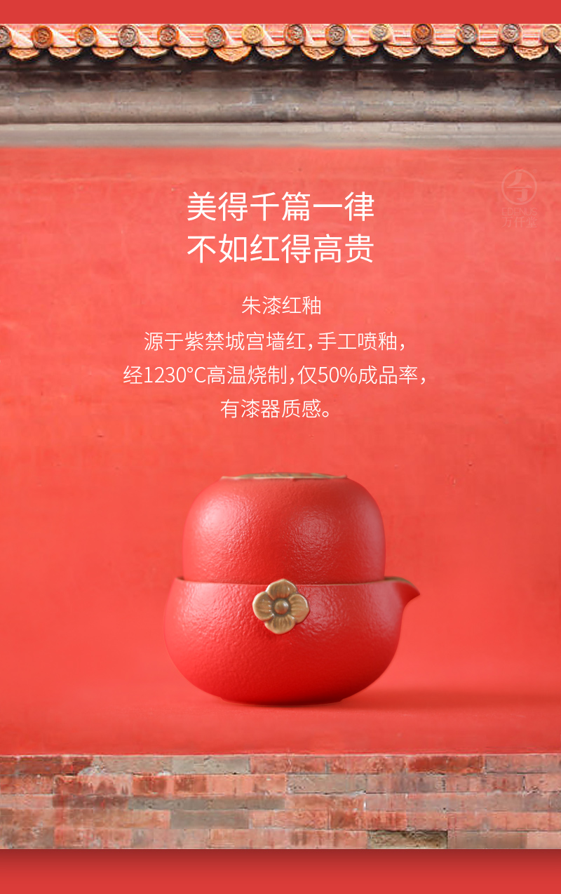 万仟堂 | 事事如意·快客杯2 旅行茶具 陶瓷一壶一杯 旅行茶具套装 水果茶具 便携包 事事如意 朱漆釉
