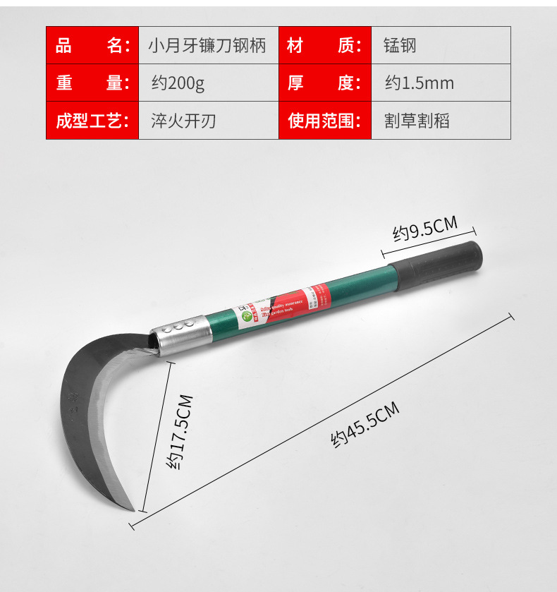 【仅限自提】立锦 锰钢铁柄农用镰刀 小月芽镰刀 割草割稻 长约45.5cm
