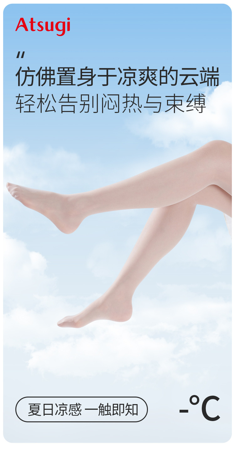 厚木Atsugi【3双装】冷系列夏季凉感薄款不易勾丝裸感肤色性感连裤袜丝袜女HP5063P