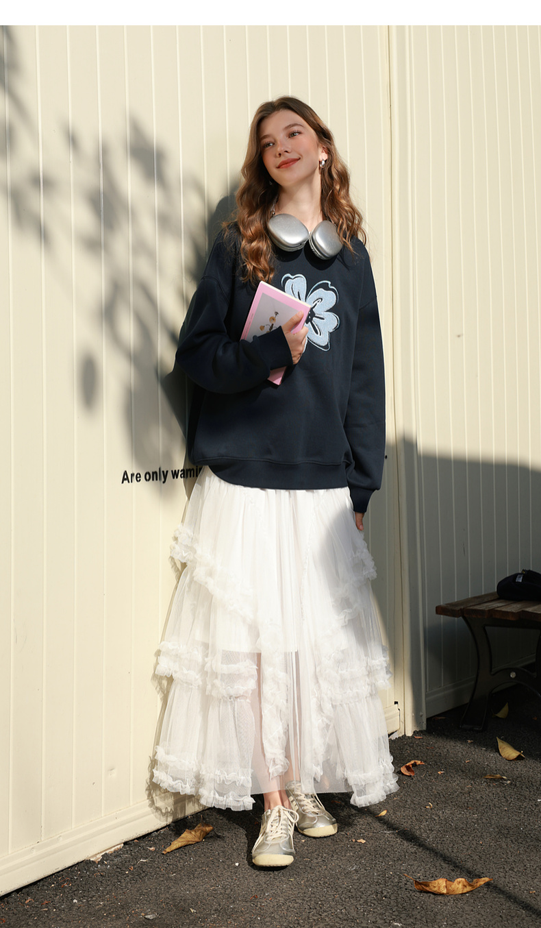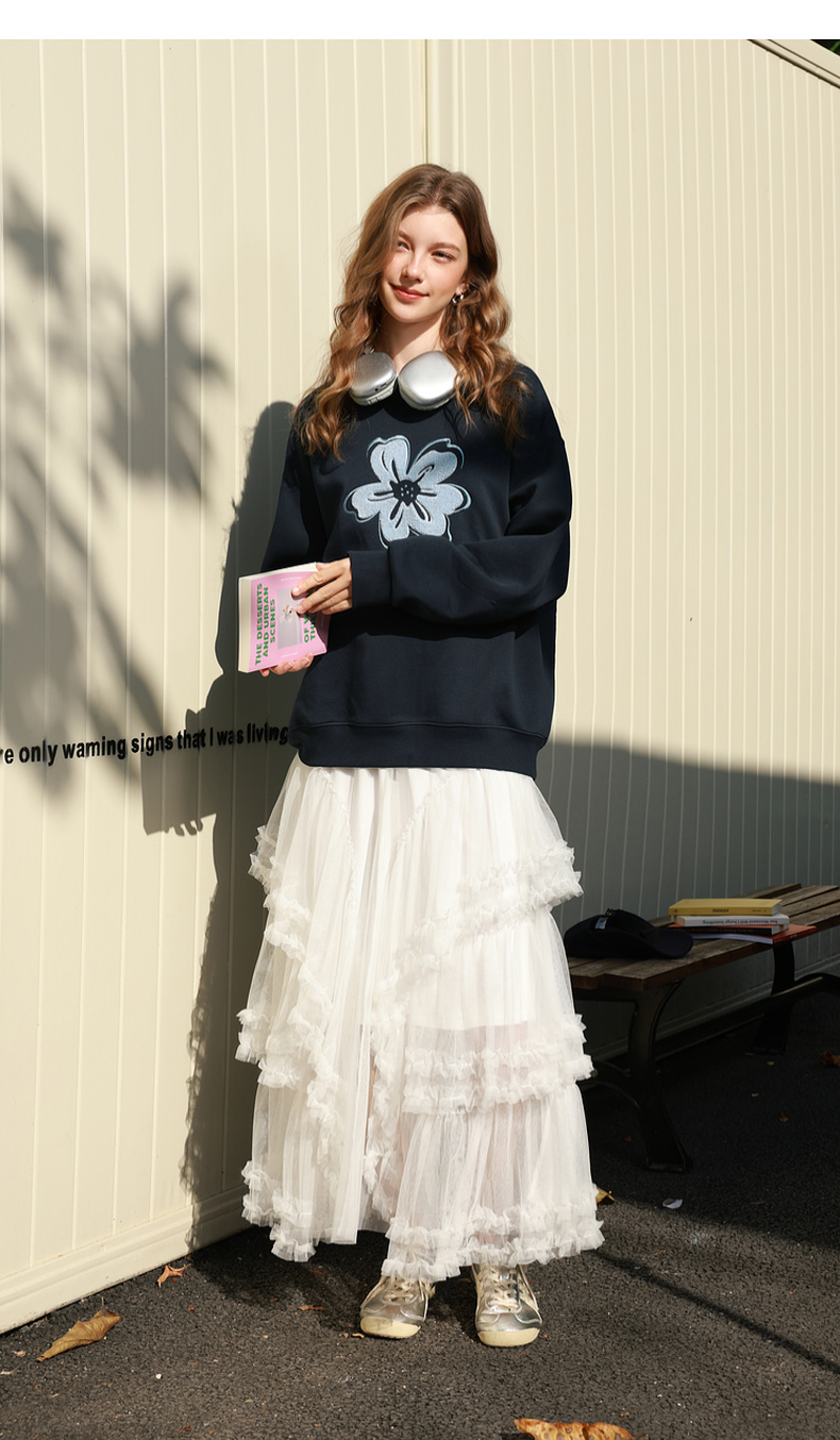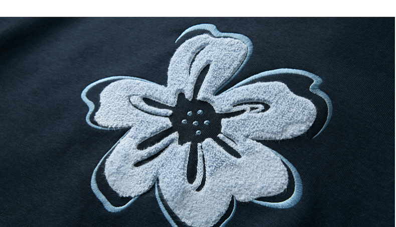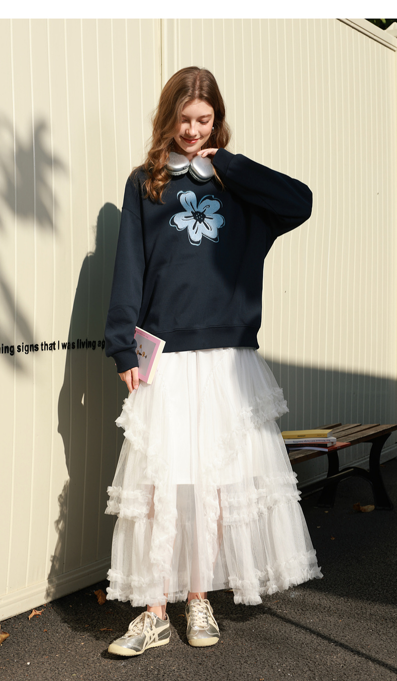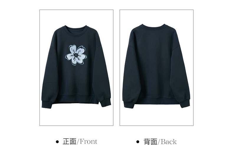 三彩2026春季新款花朵毛巾绣卫衣套头衫宽松休闲落肩袖复古M