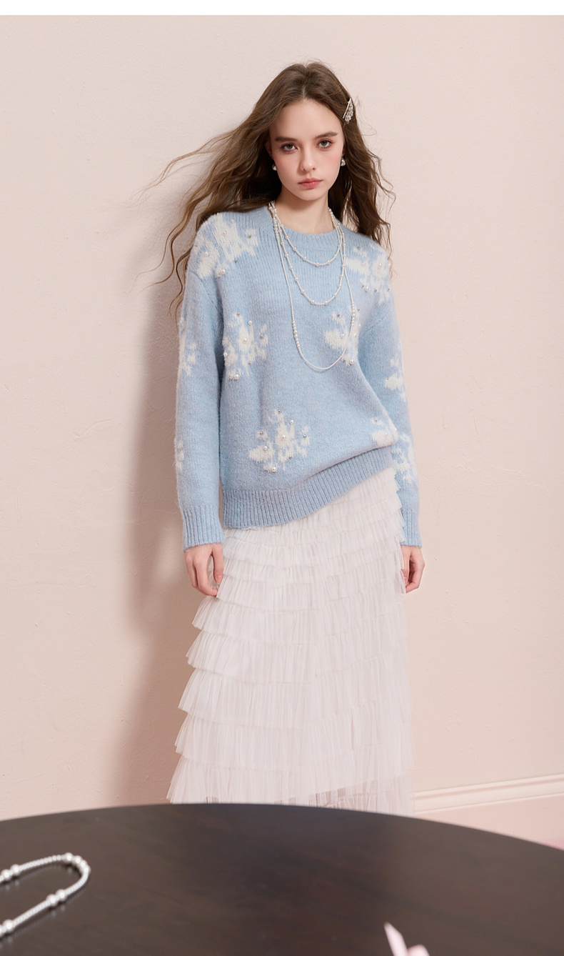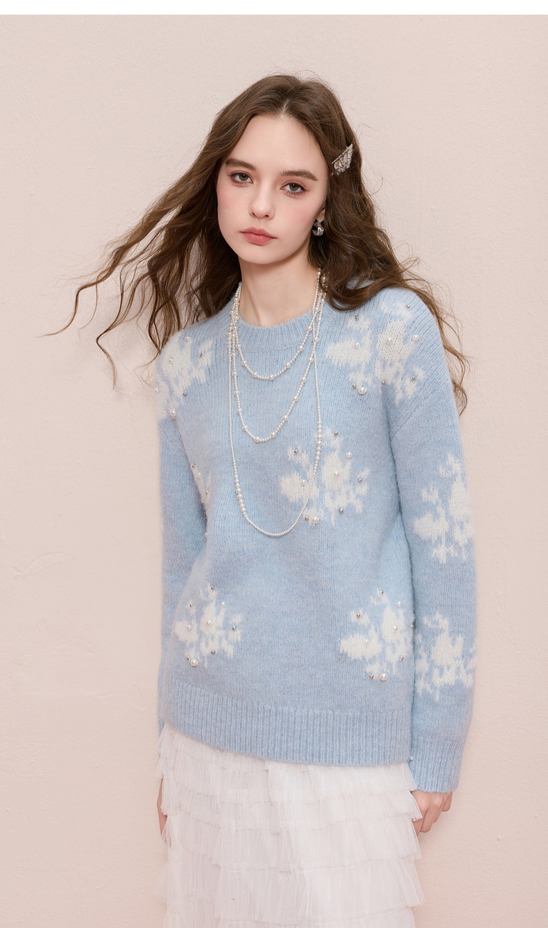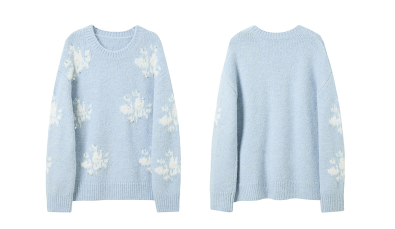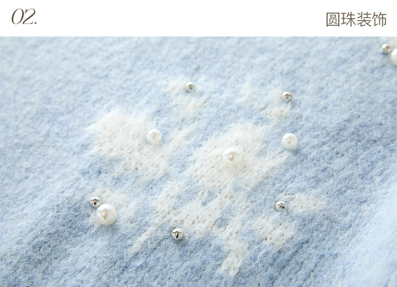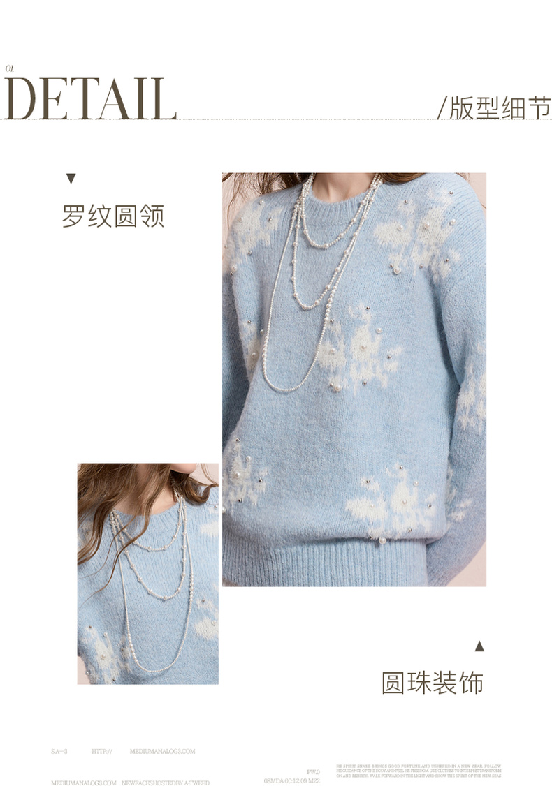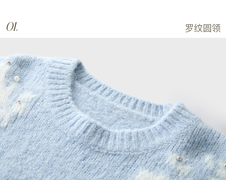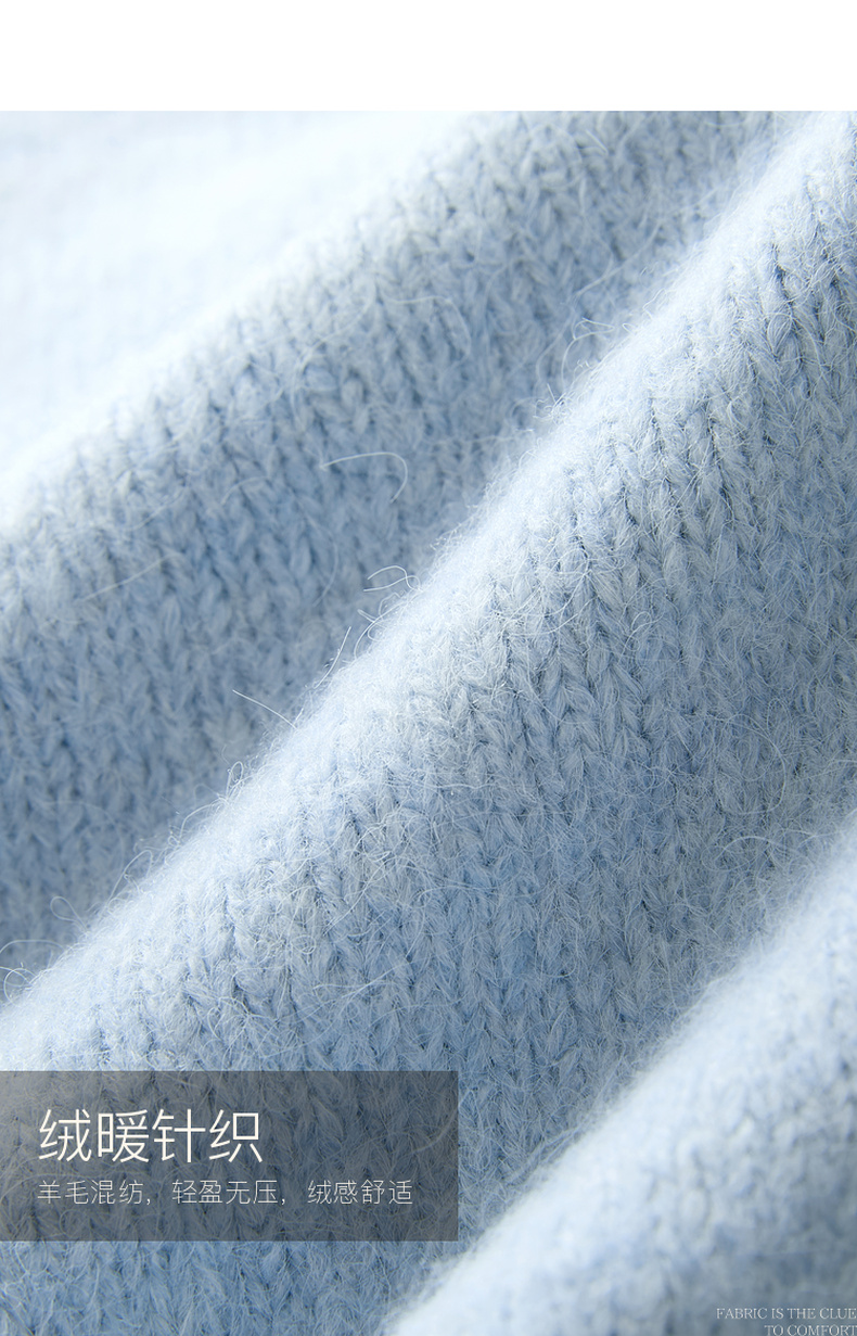 三彩2025冬季新款圆领落肩袖针织衫套头上衣宽松甜美毛衫M