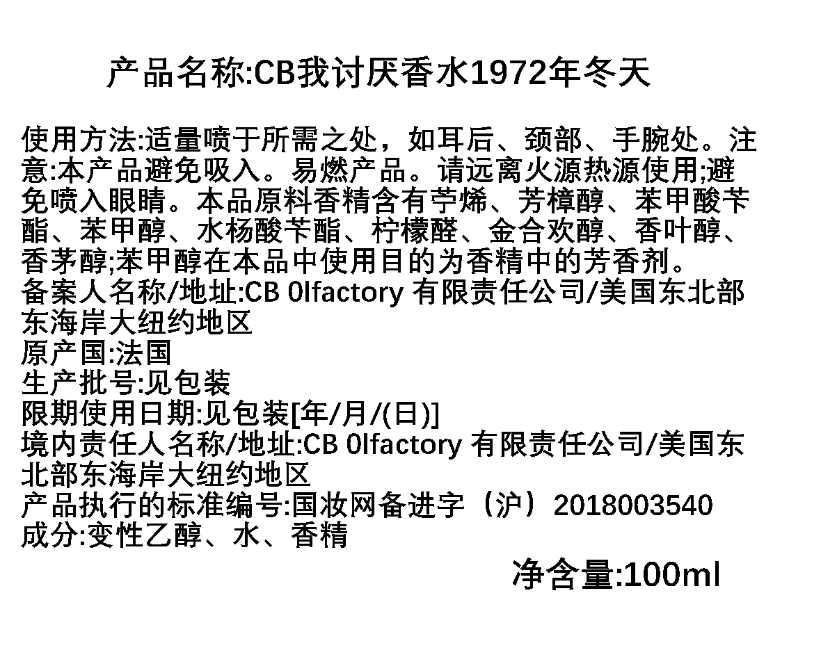 CB I HATE PERFUME我讨厌香水 1972年冬天香水