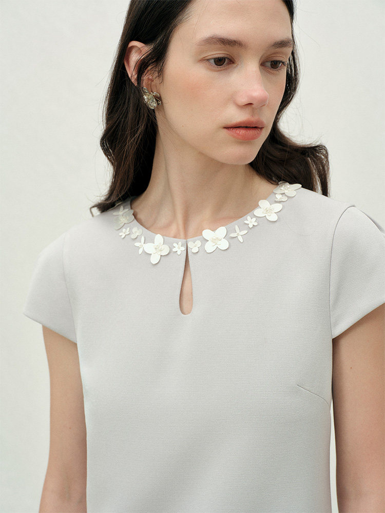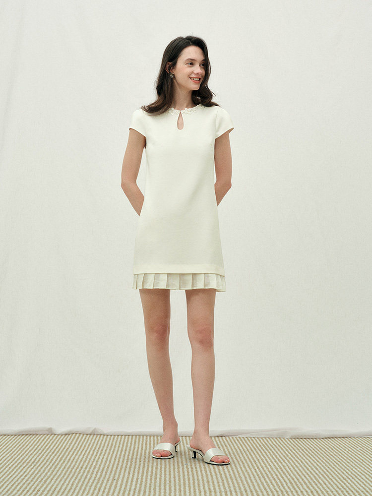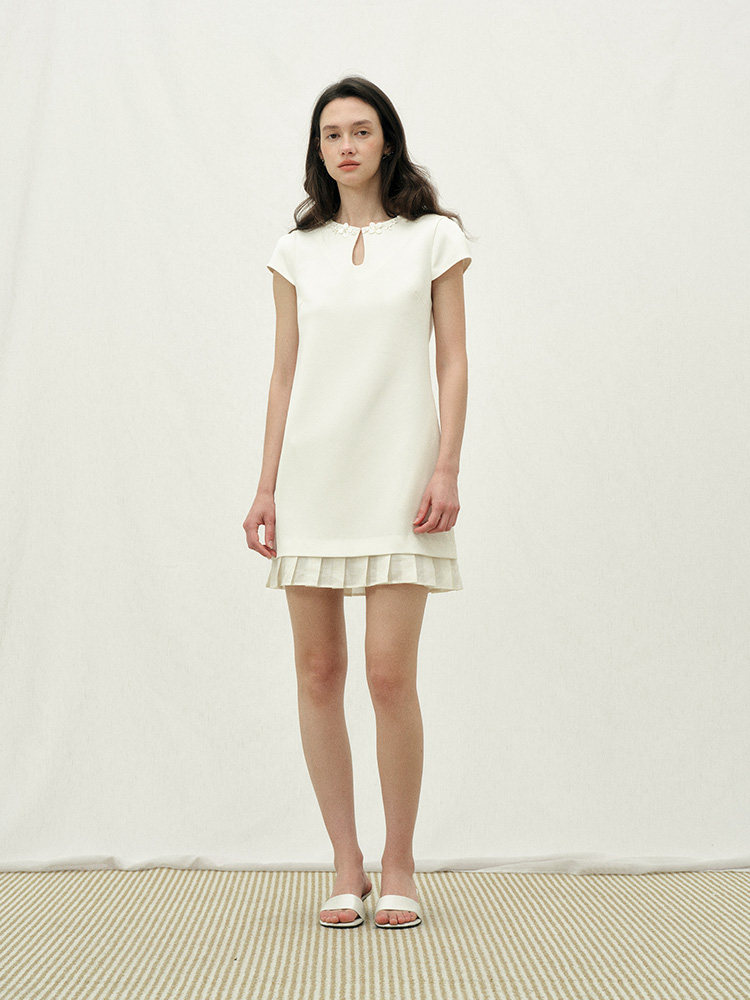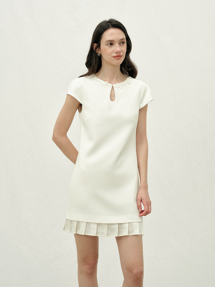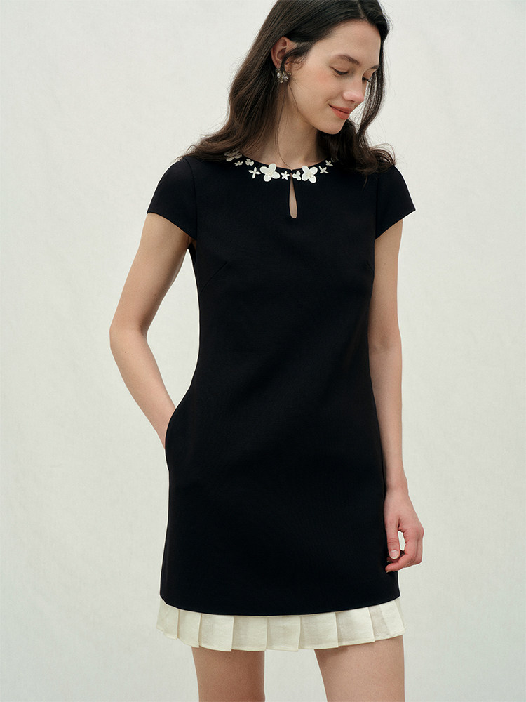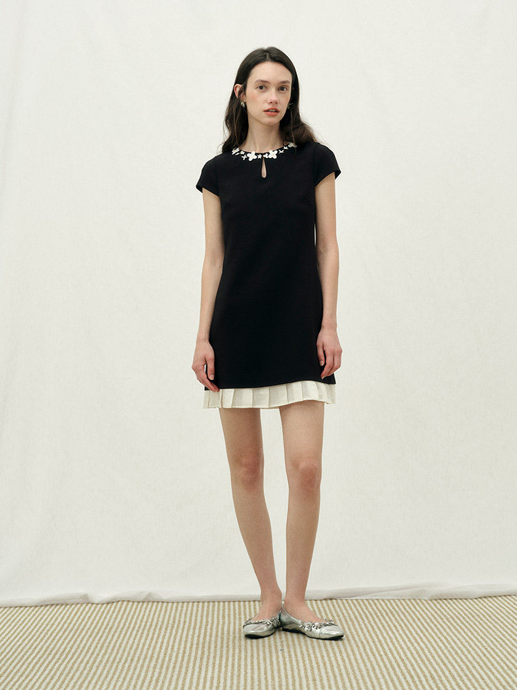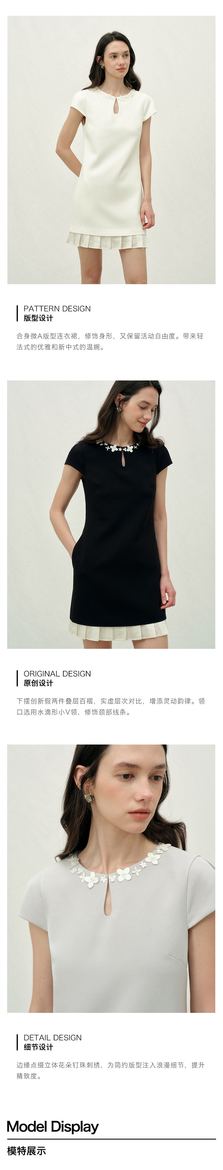 ForPoem 26/SS 原创设计花朵百褶连衣裙微a简约v领休闲精致裙子女