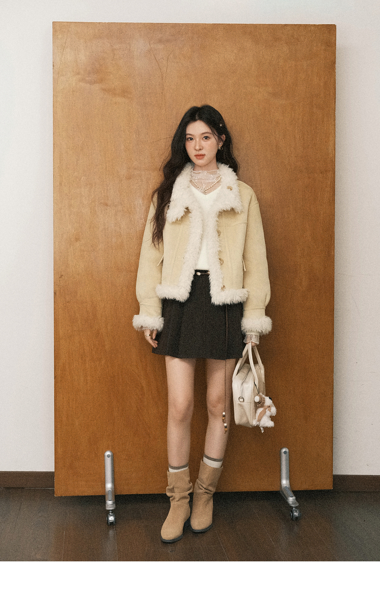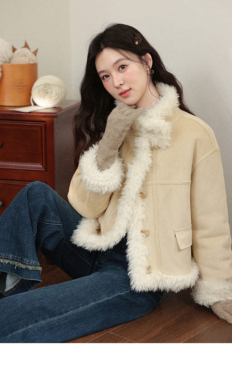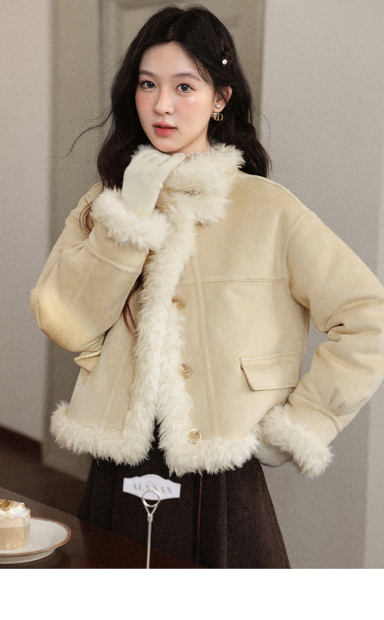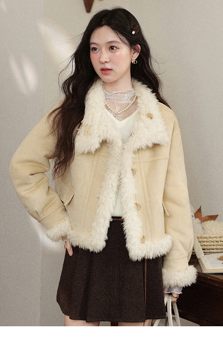 鹿向南「烟波浩渺」法式千金风黄色短外套女2025秋冬宽松厚款开衫