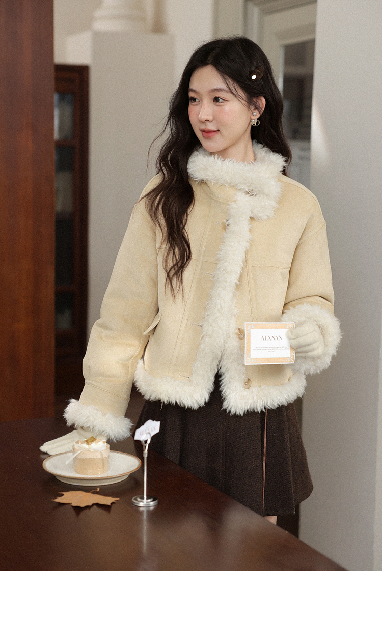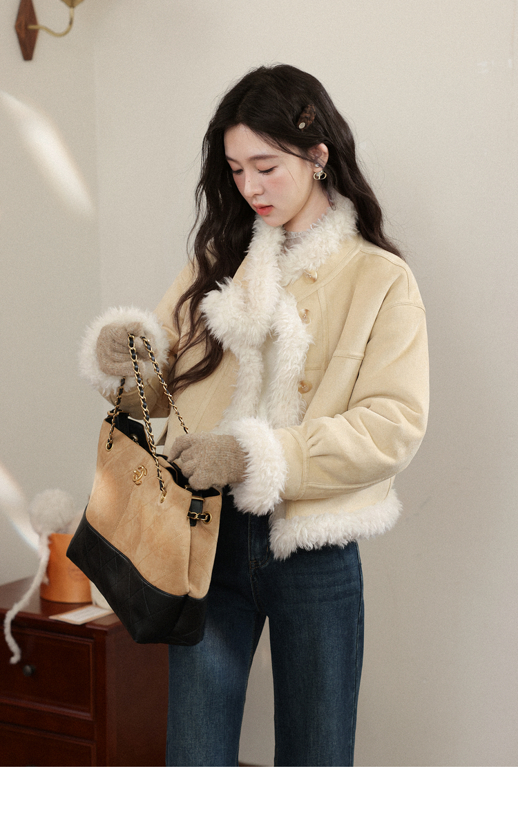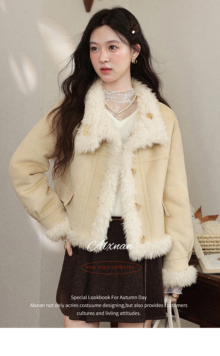 鹿向南「烟波浩渺」法式千金风黄色短外套女2025秋冬宽松厚款开衫