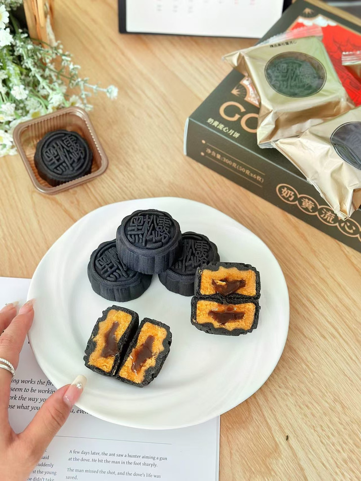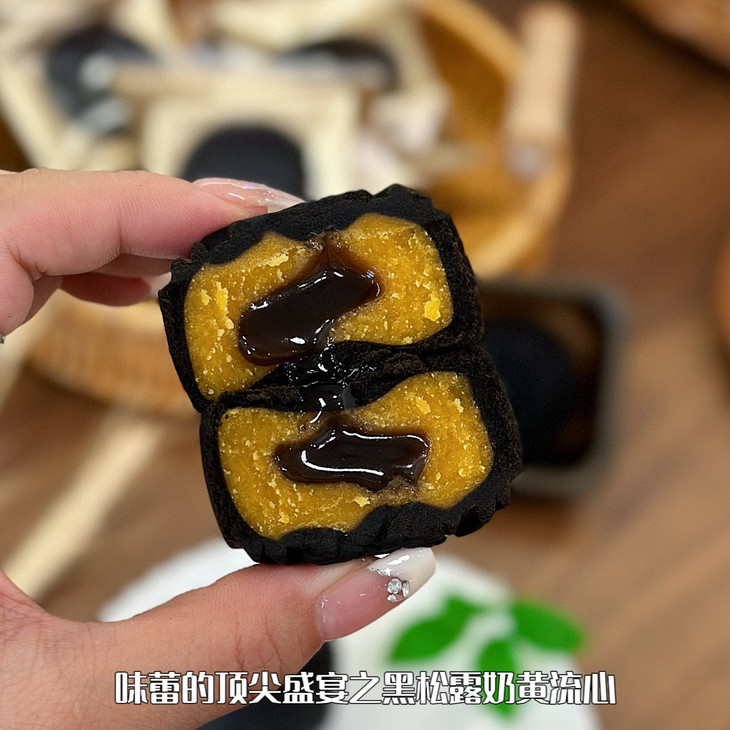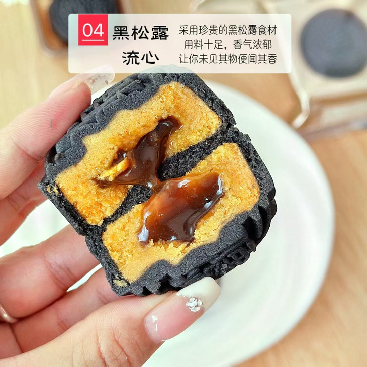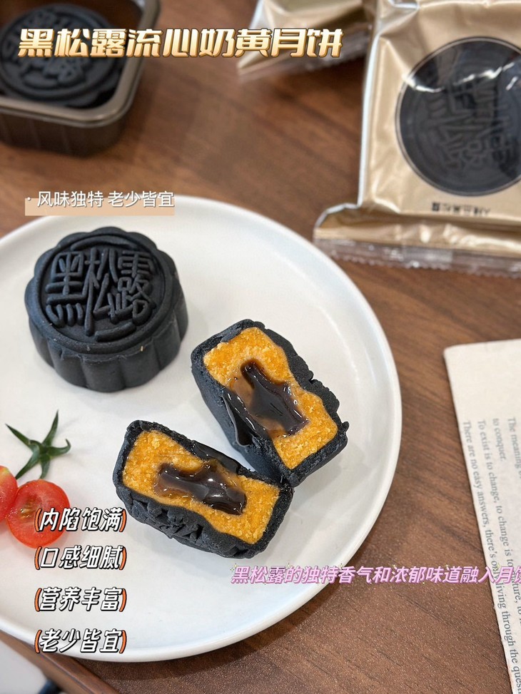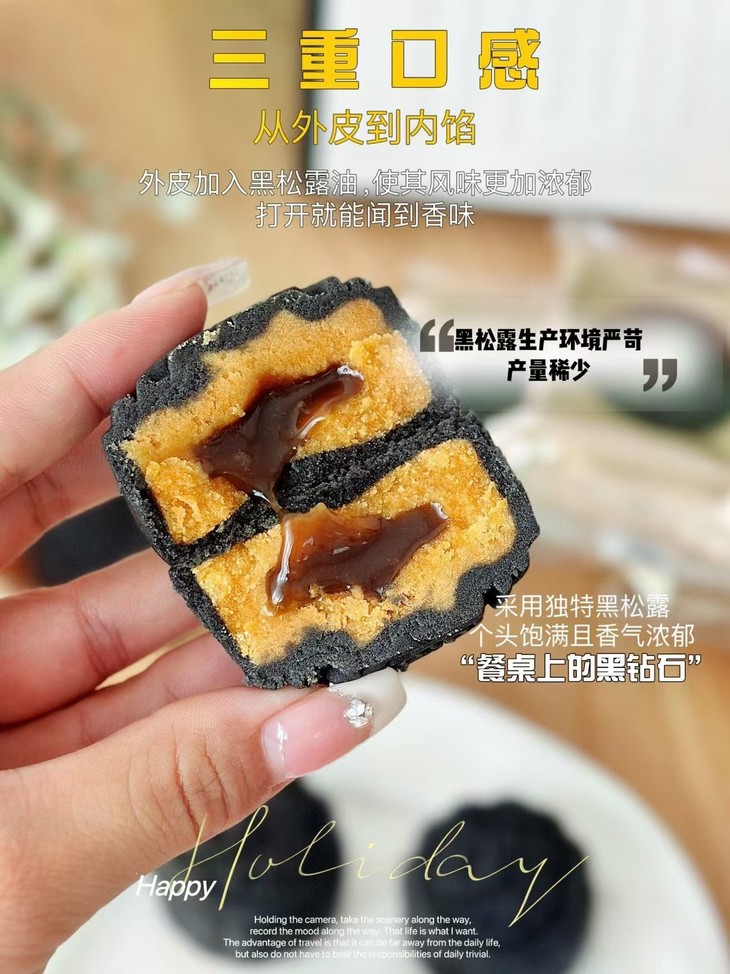 黑松露月饼有其独特的口感和风味喔✅ 品尝时能够感受到黑松露的浓郁和月饼的细腻感💯