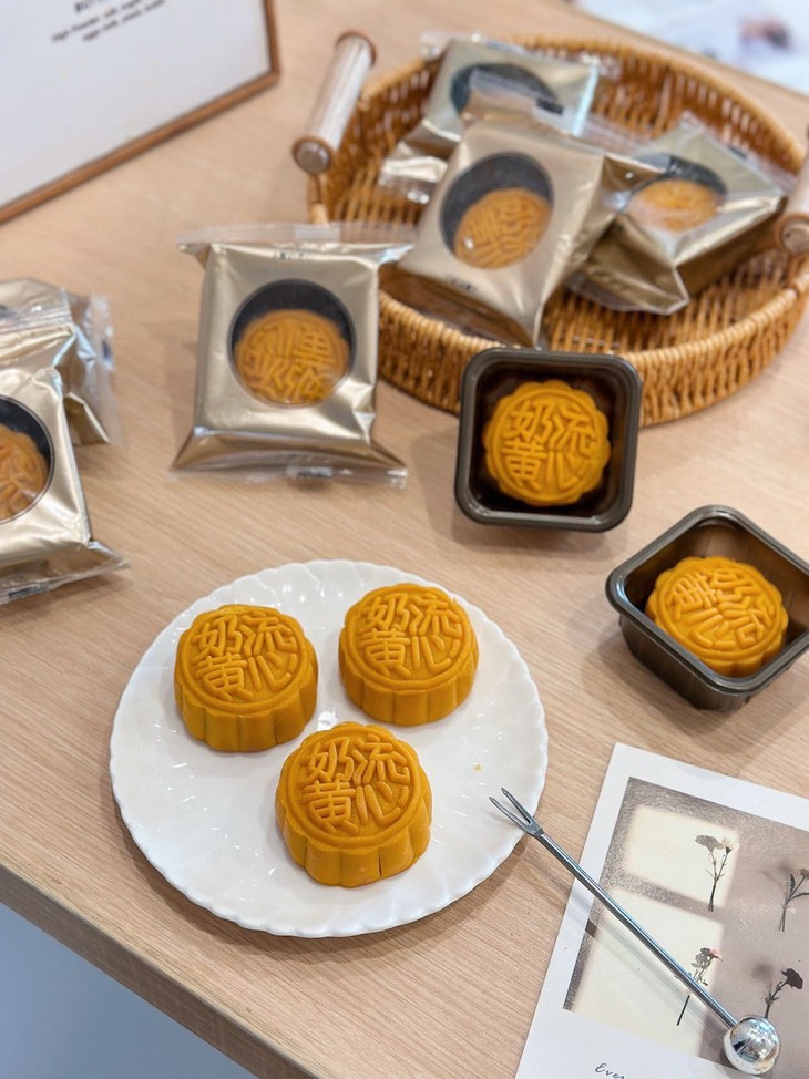 奶黄流心月饼,轻轻一口,甜蜜满心纯净甘甜的奶黄,搭配传统手艺,奶黄流心月饼将为您的味蕾带来一场独特的盛宴 金黄色的外皮,细腻而酥软🥮 内里的奶黄馅料,香滑可口 美妙滋味瞬间融化在口中