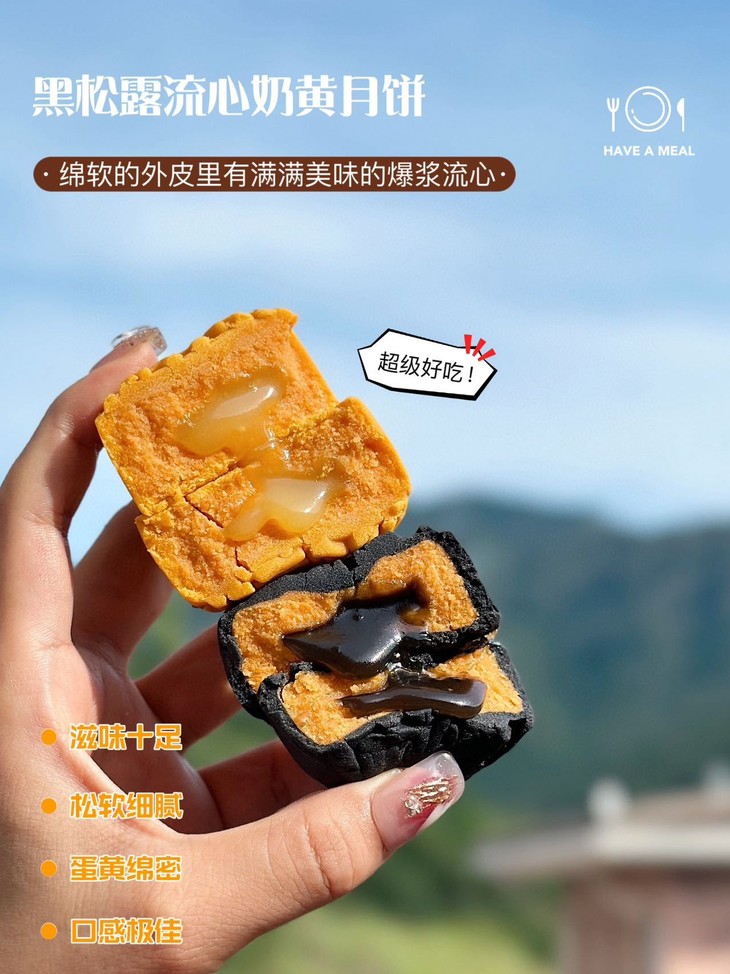 这次不仅带来了黑松露月饼,还有更加奢华的“奶黄流心月饼”‼‼‼ 这浓郁的爆浆流心,美味直击心脾🤩