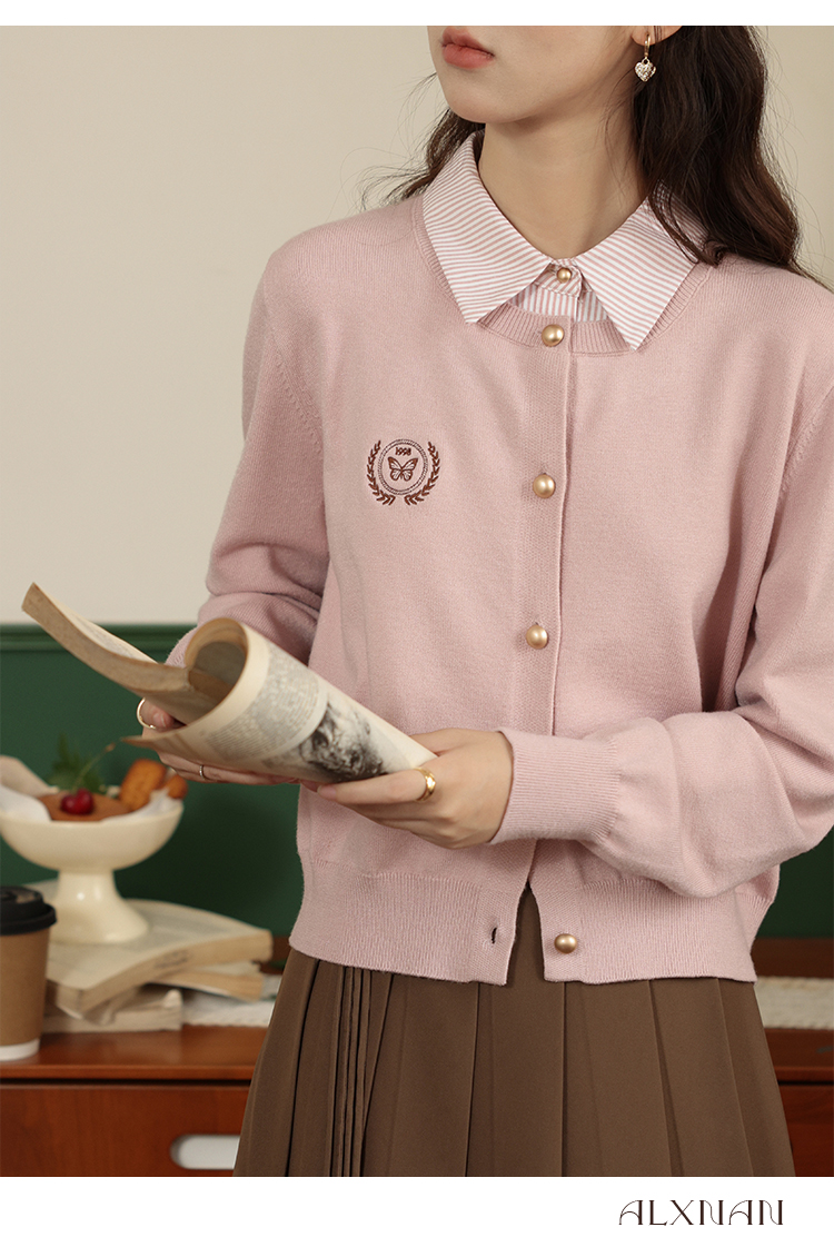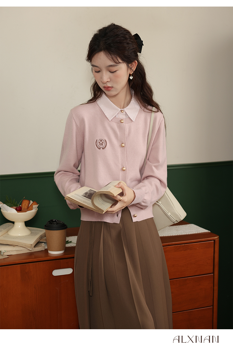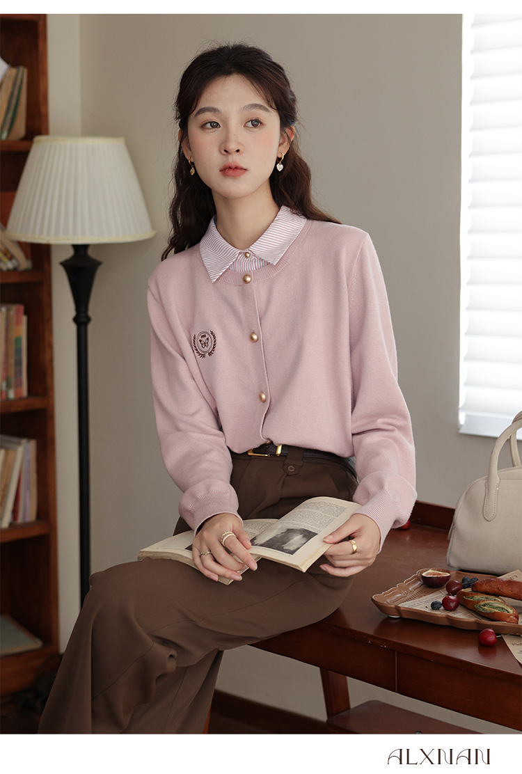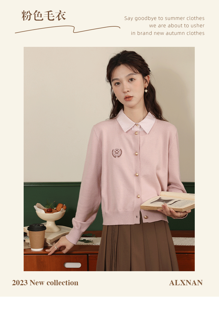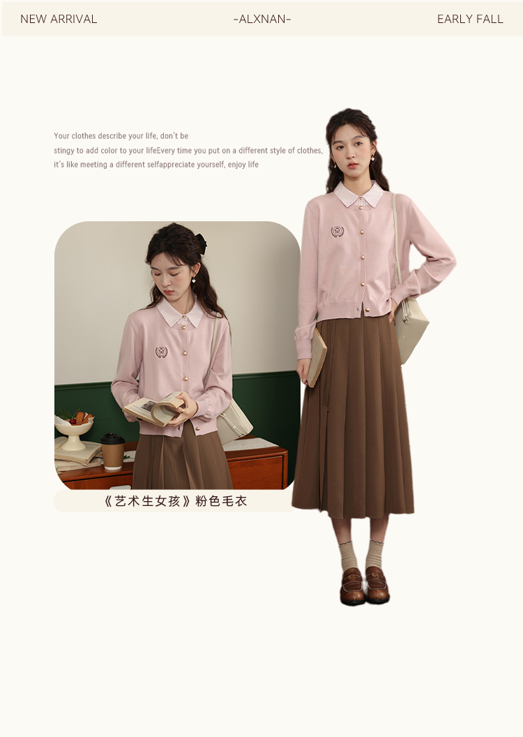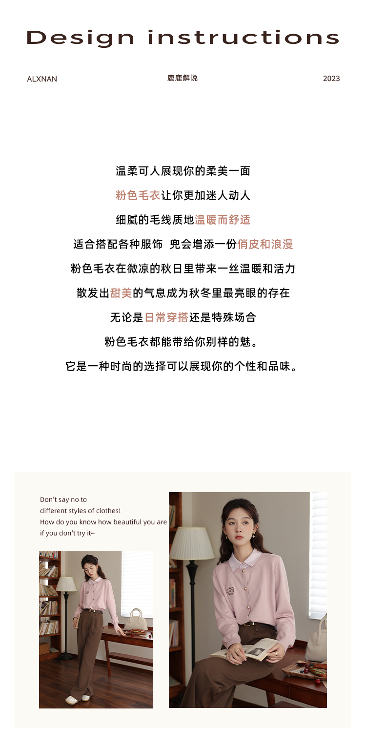鹿向南「艺术生女孩」粉色开衫上衣2025秋冬新款气质休闲长袖毛衣