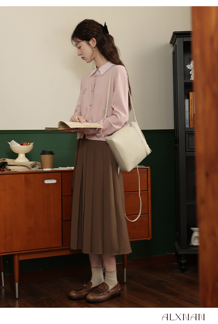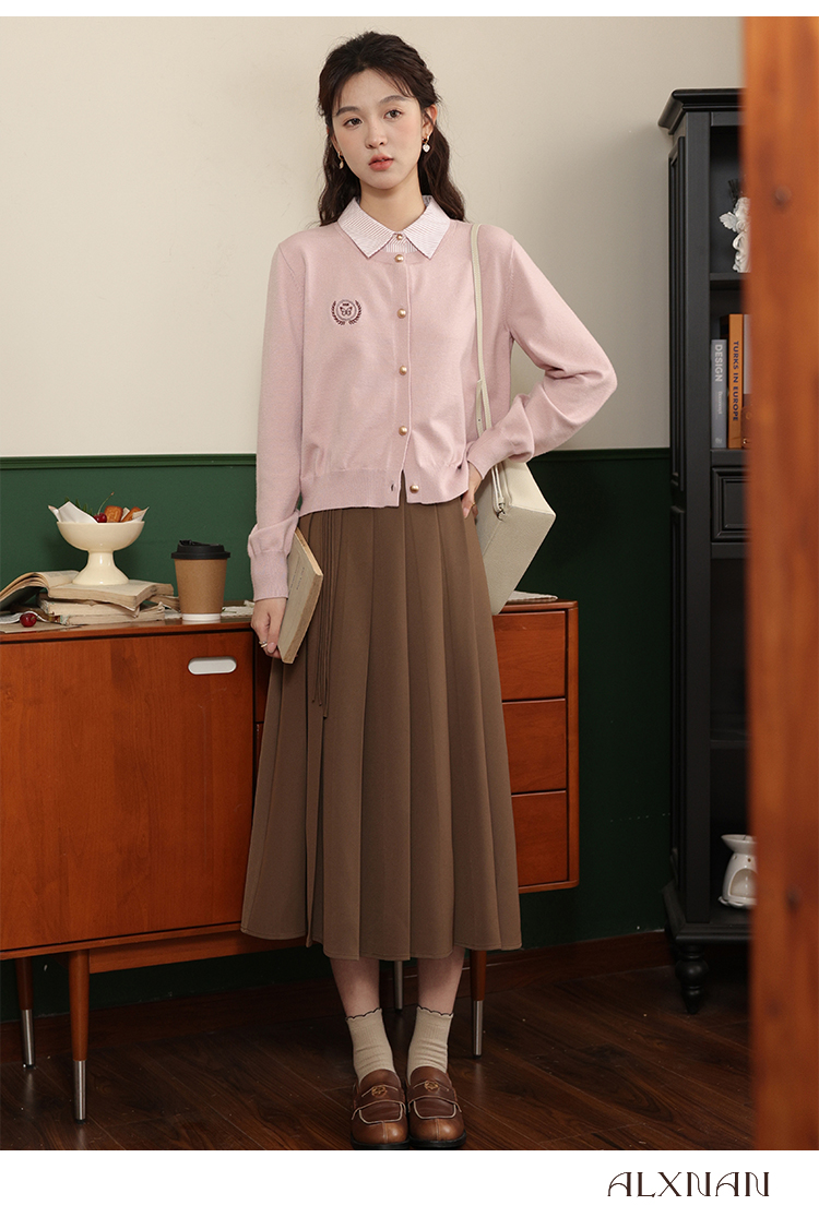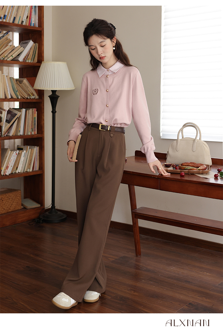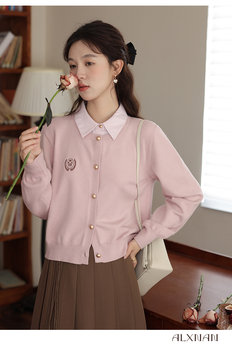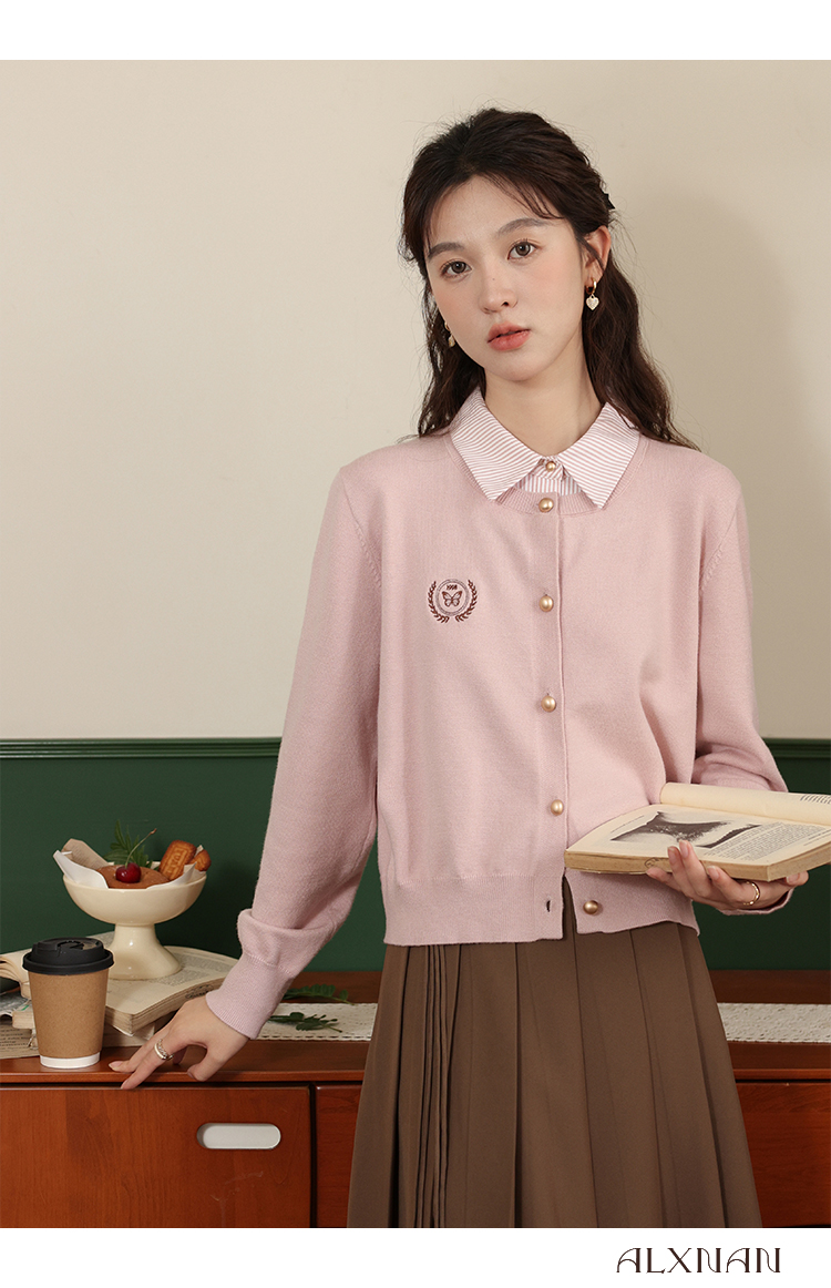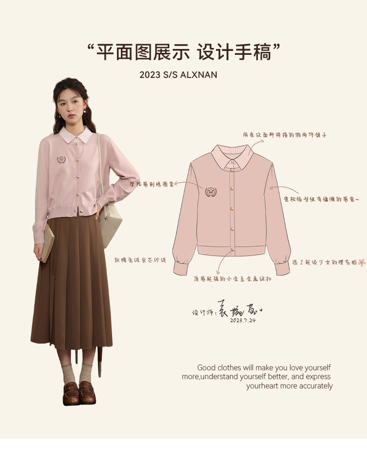鹿向南「艺术生女孩」粉色开衫上衣2025秋冬新款气质休闲长袖毛衣