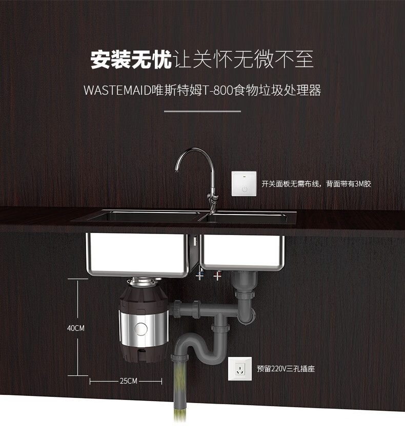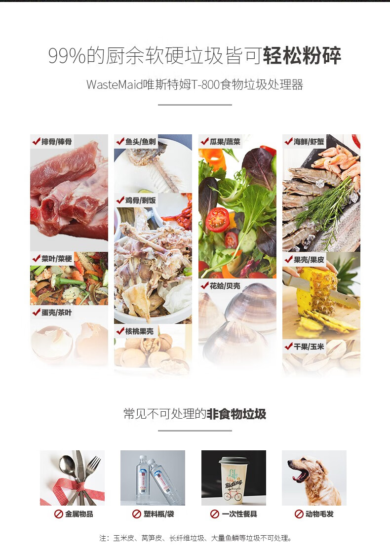 唯斯特姆/垃圾处理器/T800-RST/食物垃圾处理器 厨余粉碎机 垃圾处理器 智能自动关机