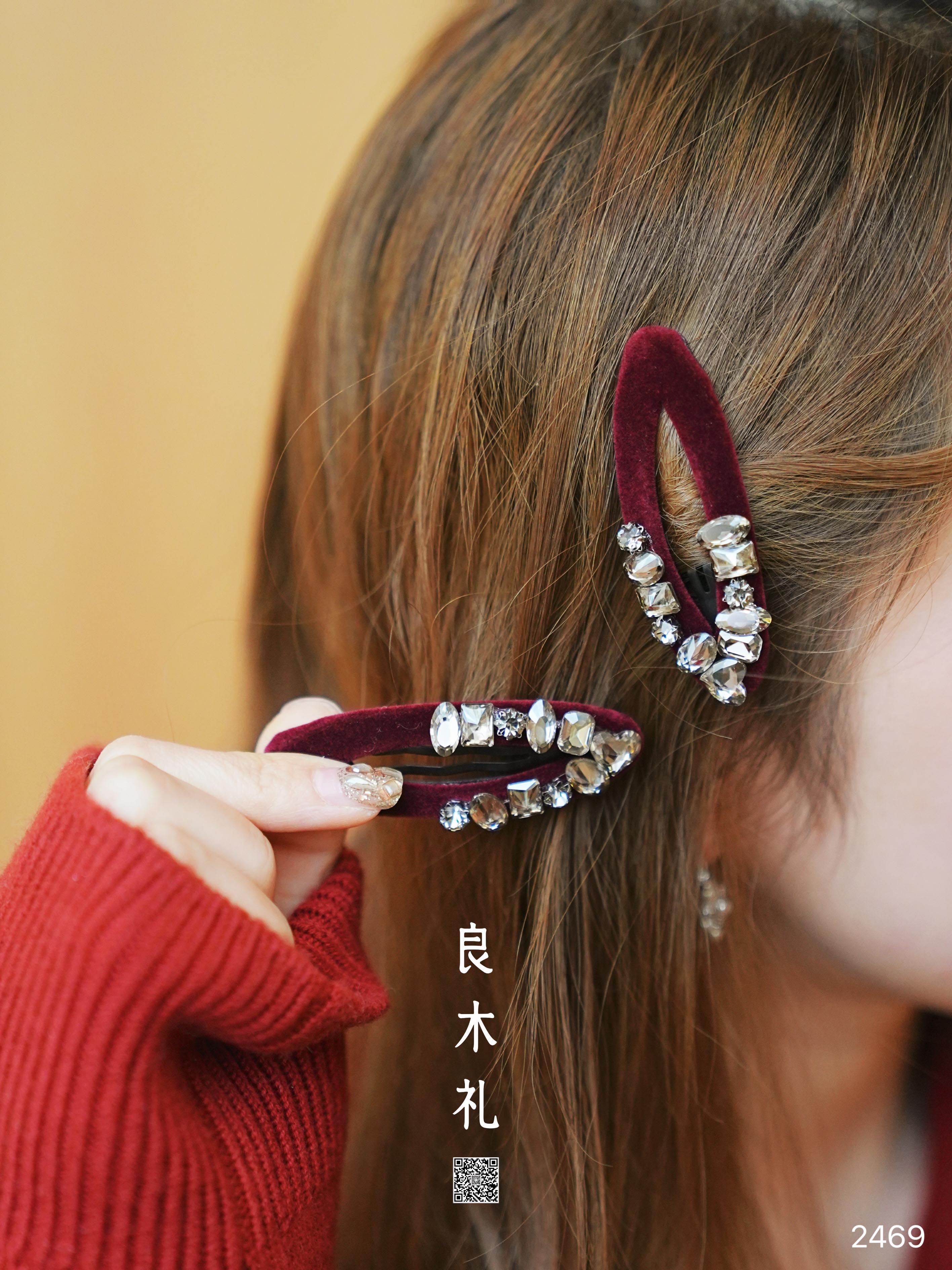 【预售7天】良木礼水钻丝绒发夹(2469F)