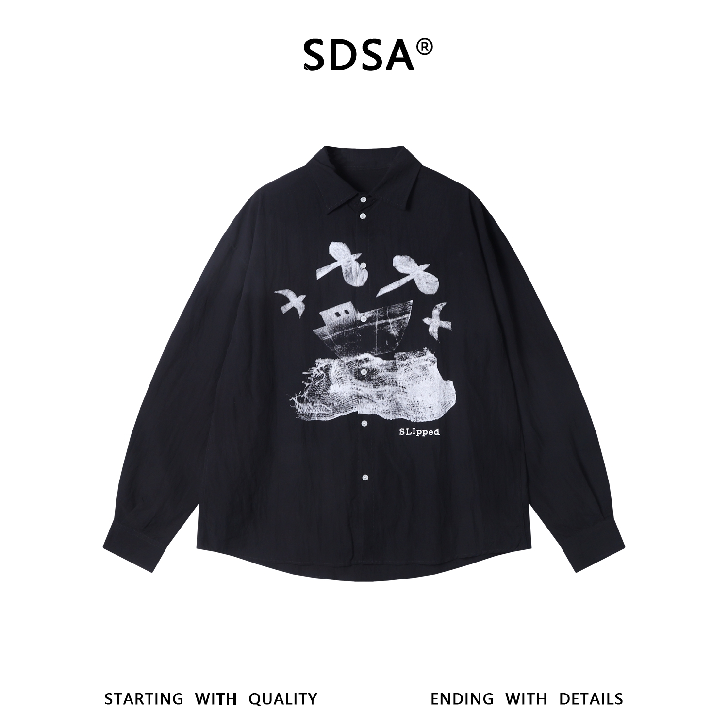 SDSA秋冬新款痞帅男装GV撞色印花设计翻领长袖衬衫休闲舒适衬衣