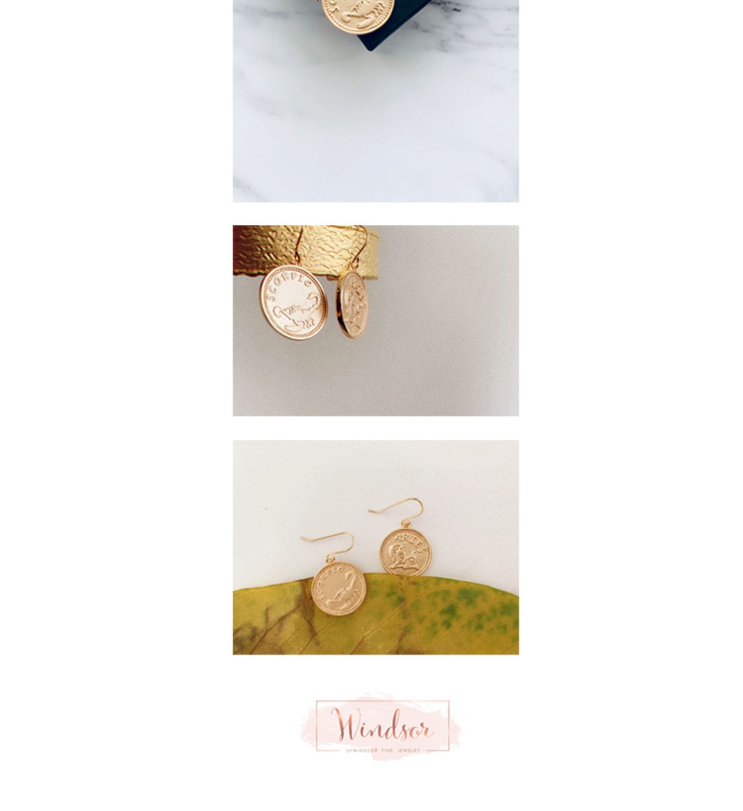 LHWINDSOR复古星座钱币耳环项链小众硬币饰品套装