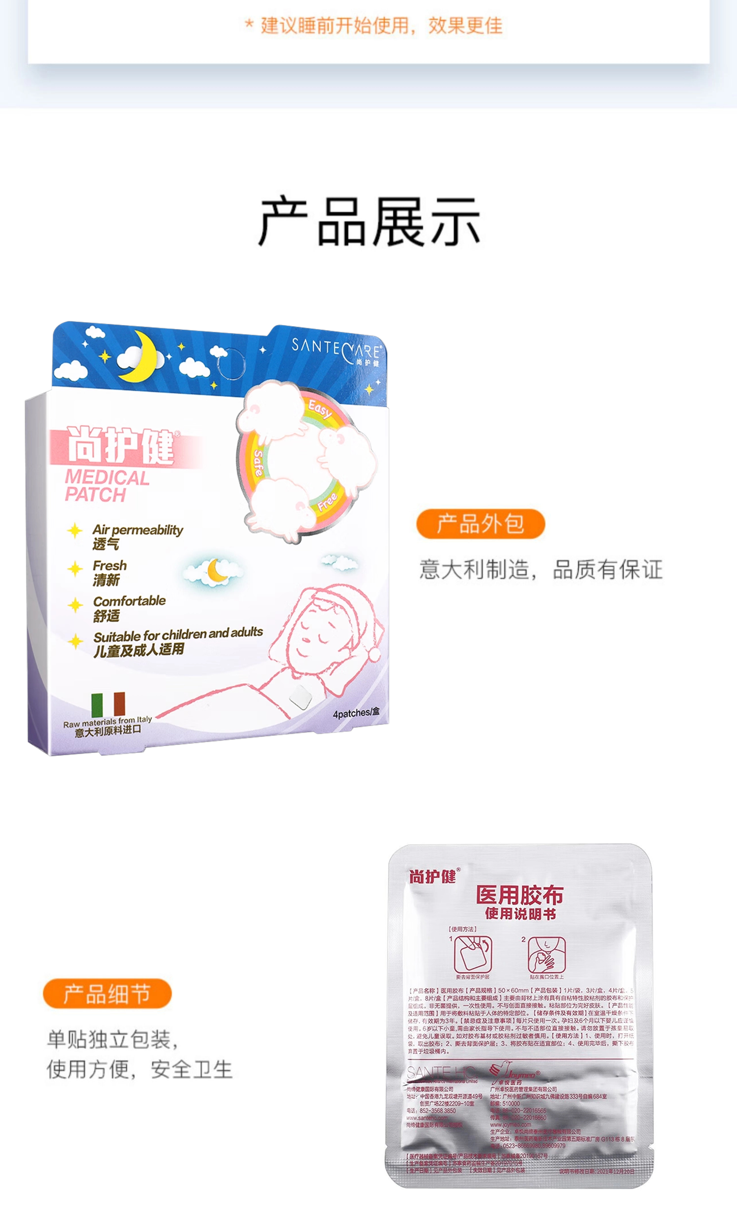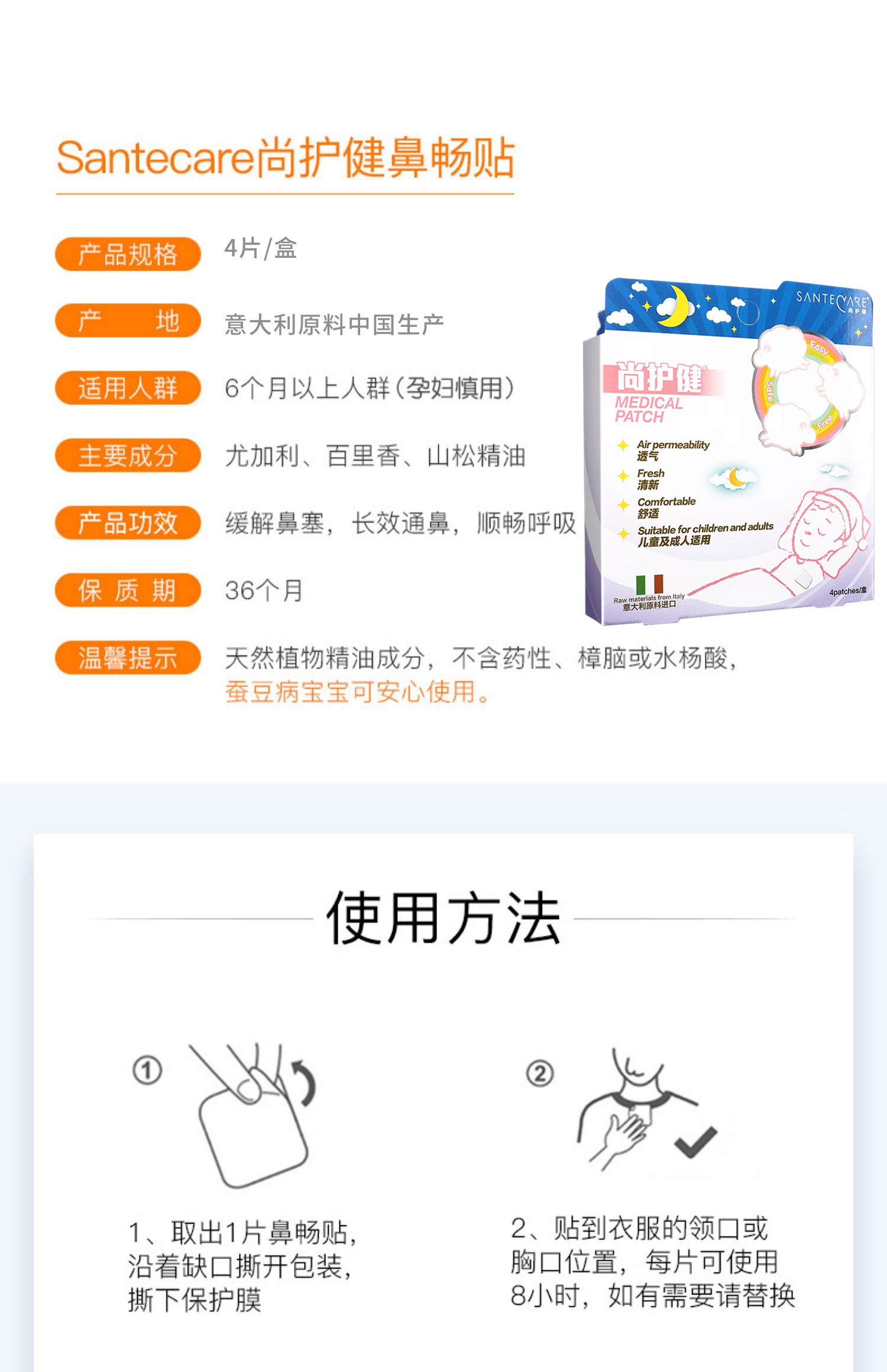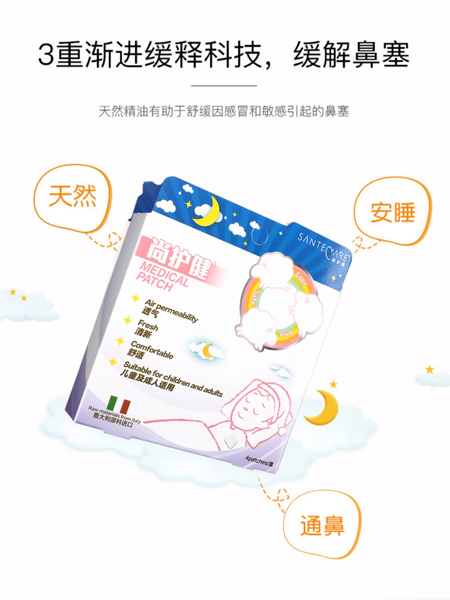 意大利进口原料-尚护健鼻舒贴 4片/盒 大人孩子都能用 通气贴 通鼻贴 秋冬感冒睡眠保护者 (效期至26年2月底) - 华点云