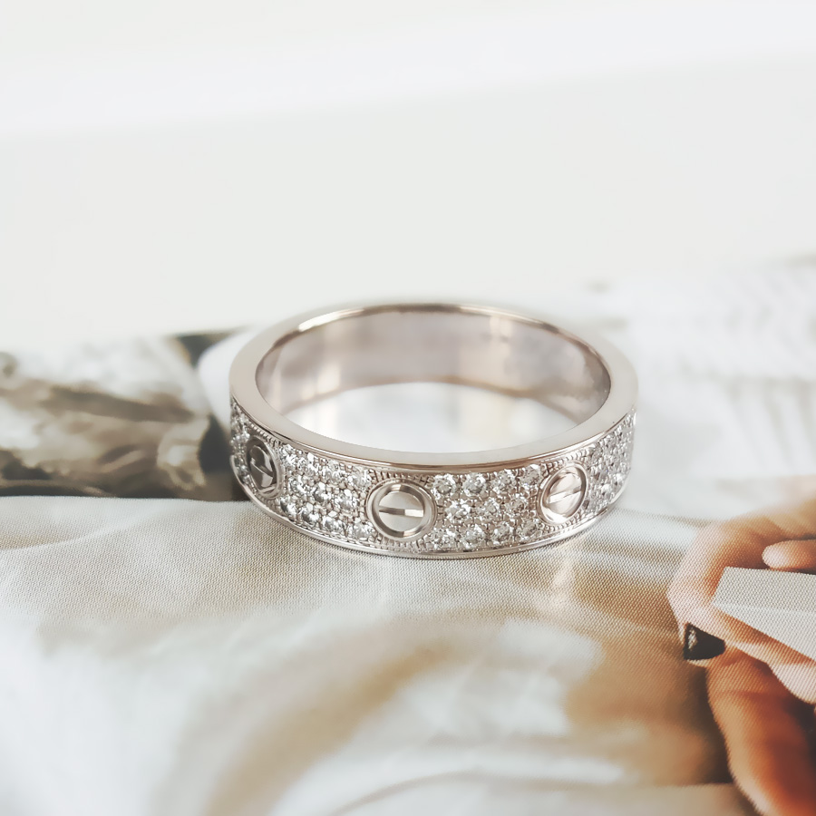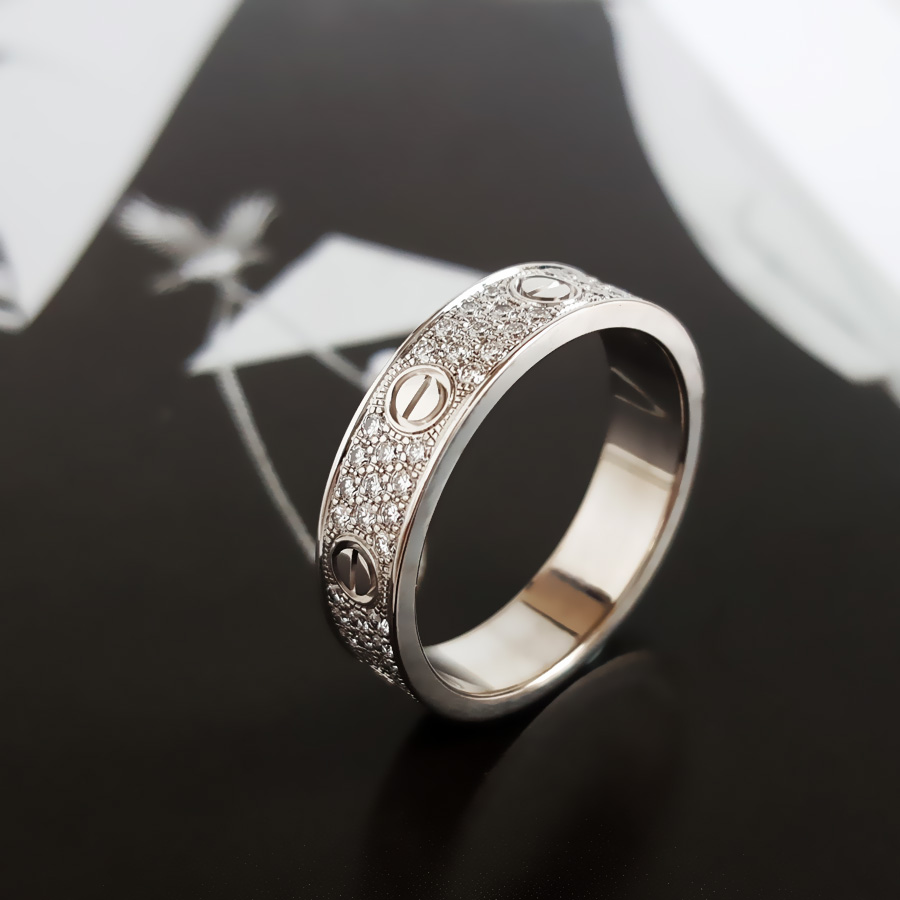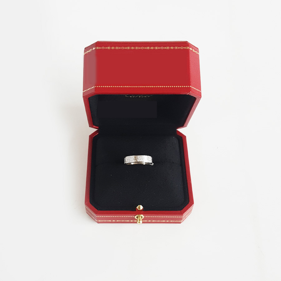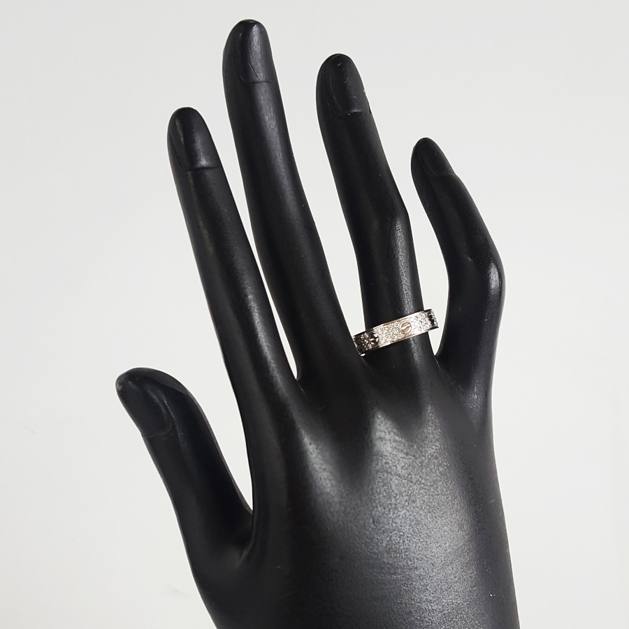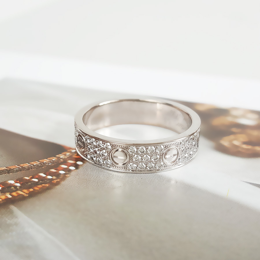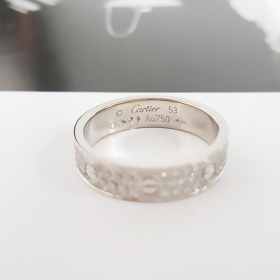 【95新】Cartier卡地亚LOVE系列B408345318K白金中宽版满钻满天星戒指53号、宽度4.6mm中性款 270525TH04