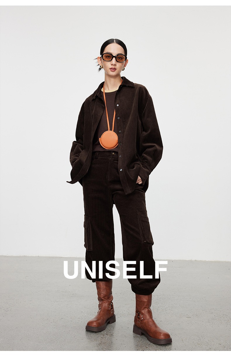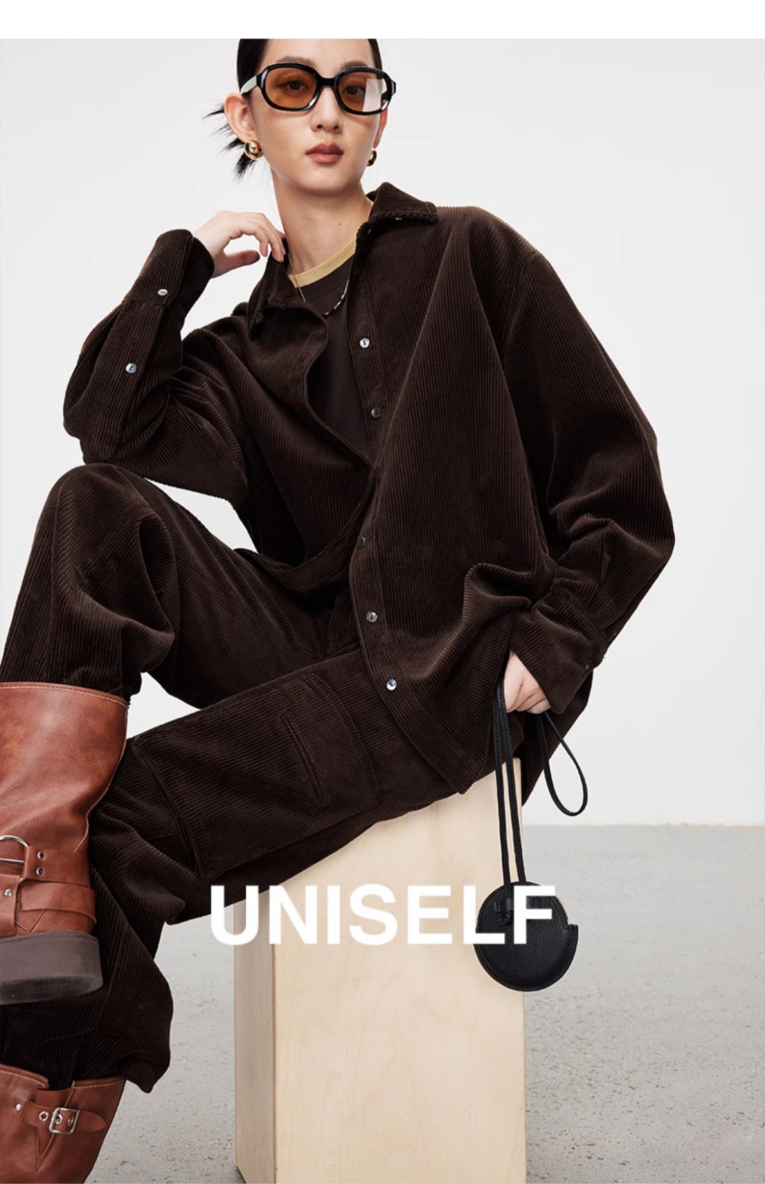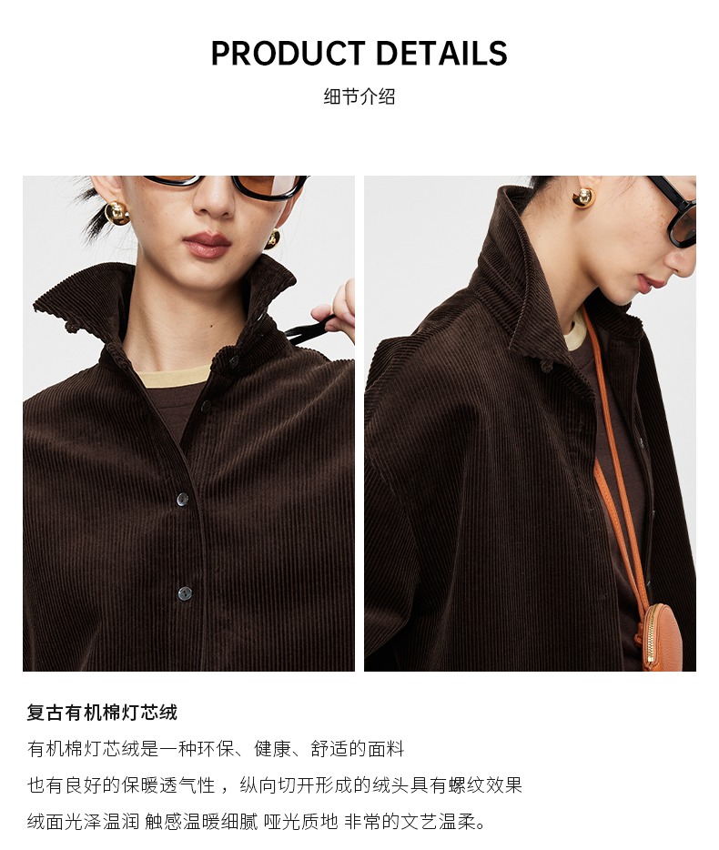 经典复古有机棉灯芯绒衬衫女2023秋冬新款工装直筒裤套装