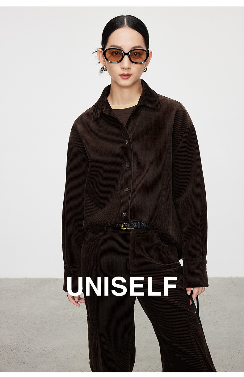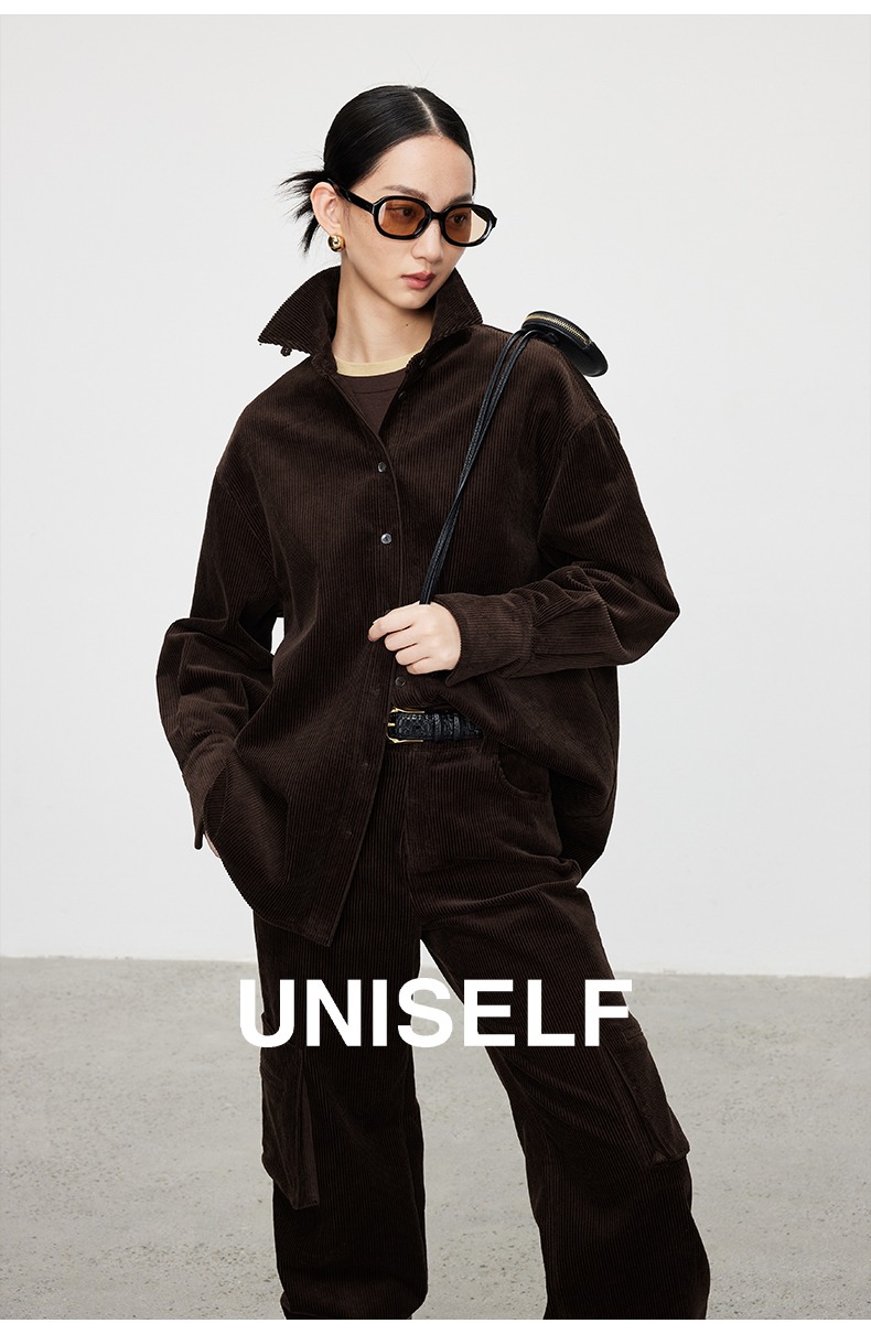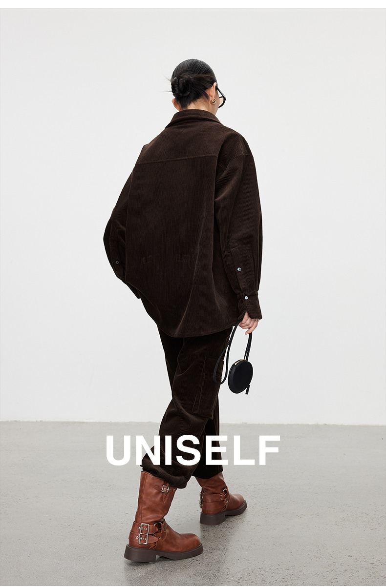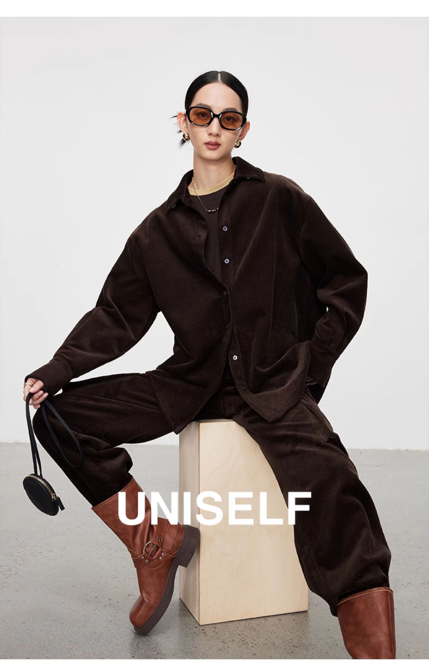 经典复古有机棉灯芯绒衬衫女2023秋冬新款工装直筒裤套装