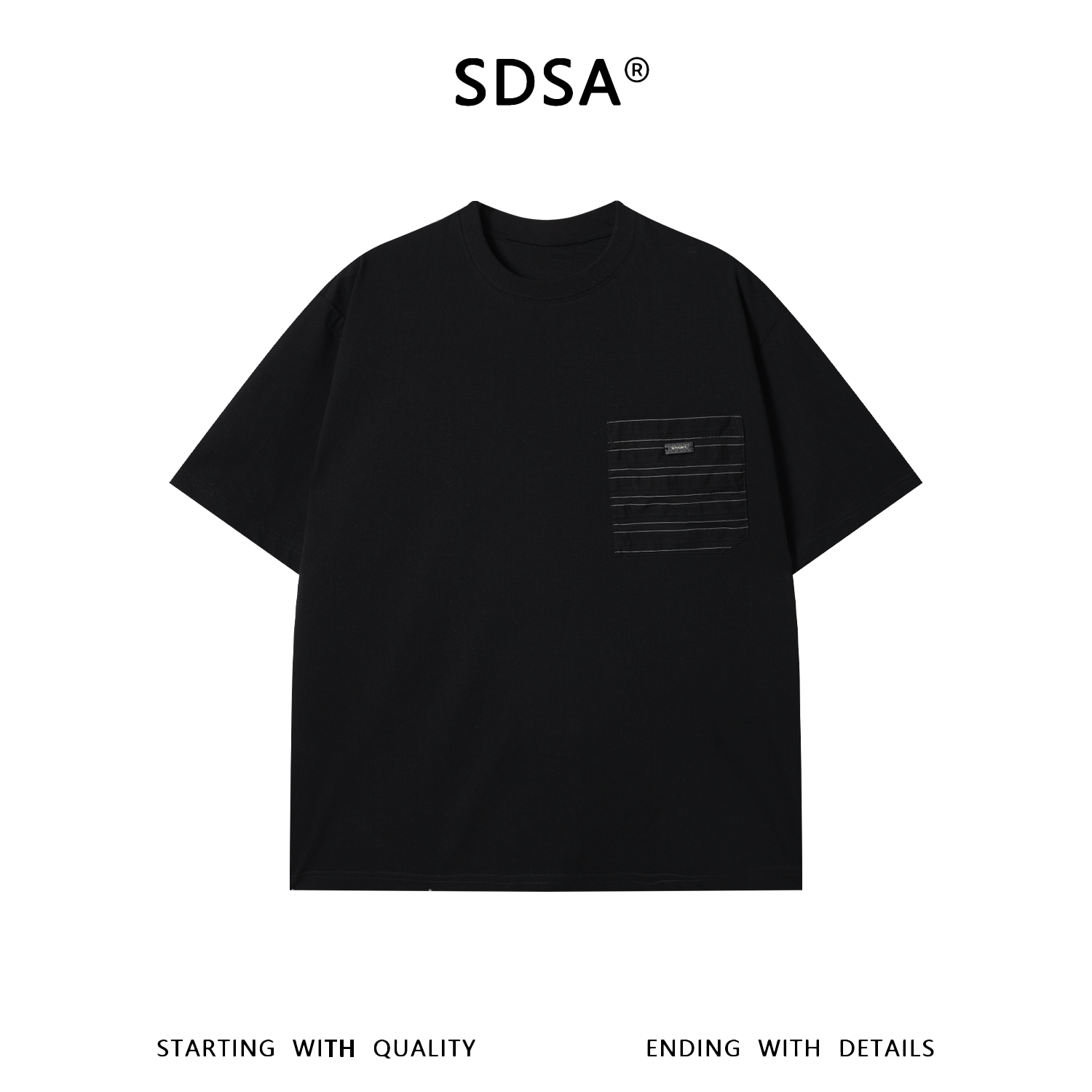 SDSA男装2026新款高贵轻奢潮牌撞色拼接口袋圆领短袖T恤百搭宽松