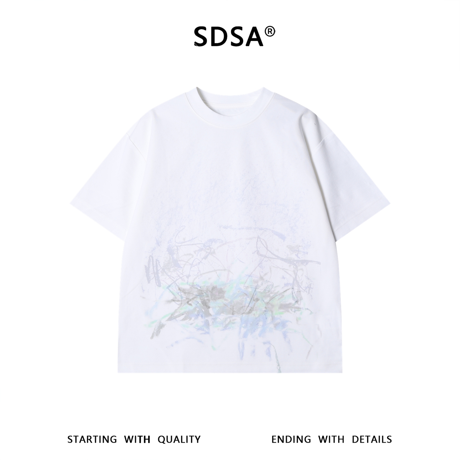 68513SDSA男装2026新款高贵轻奢简约抽象涂鸦短袖T恤宽松百搭圆领上衣