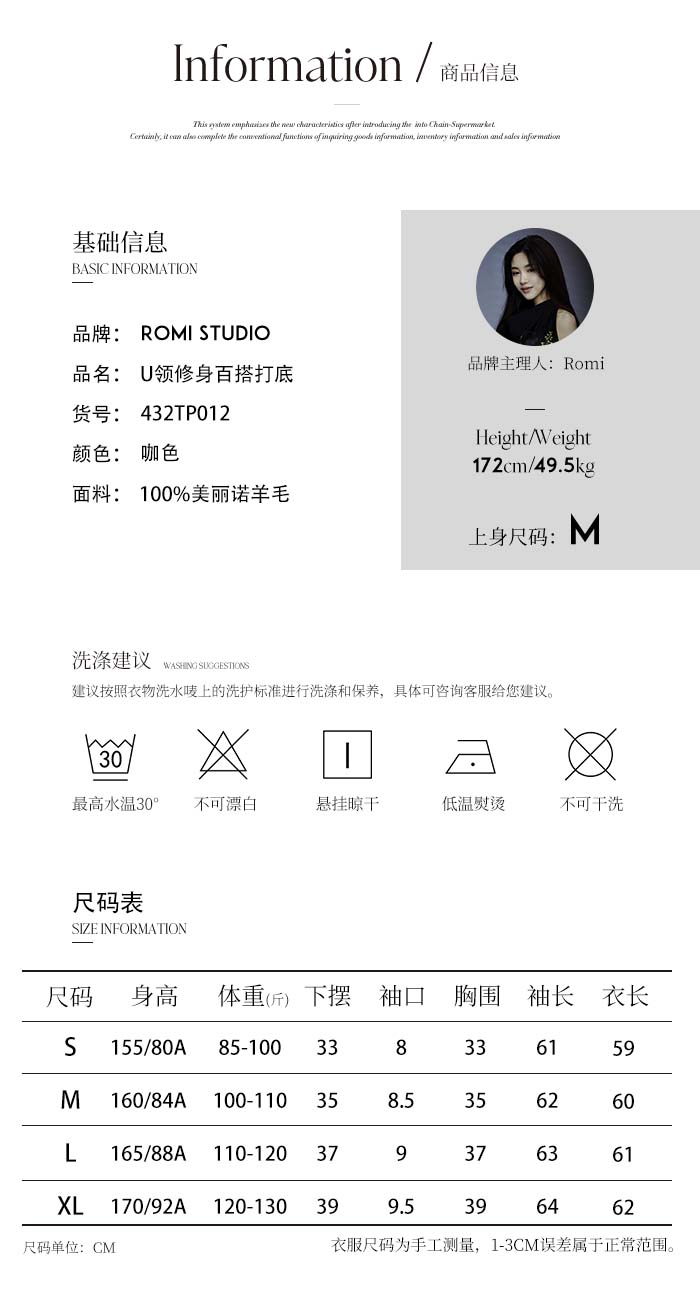 ROMI STUDIO “轻盈姿态” 14针100%羊毛扬子纱针织长袖T恤432TP012