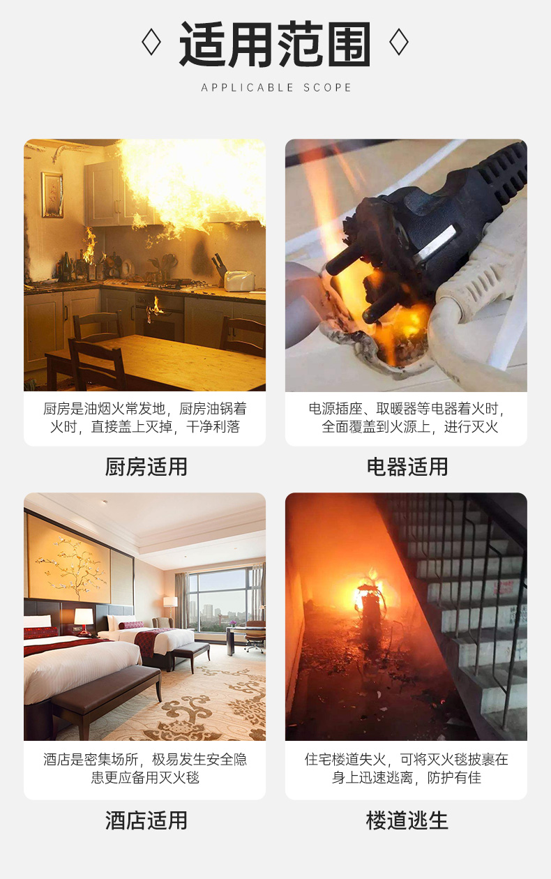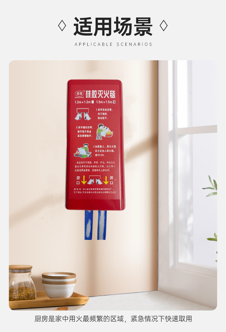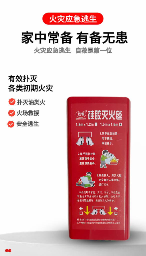 【森哥优选】灭火毯 消防专用 认证厨房家庭用玻璃纤维硅胶火灾逃生防火毯