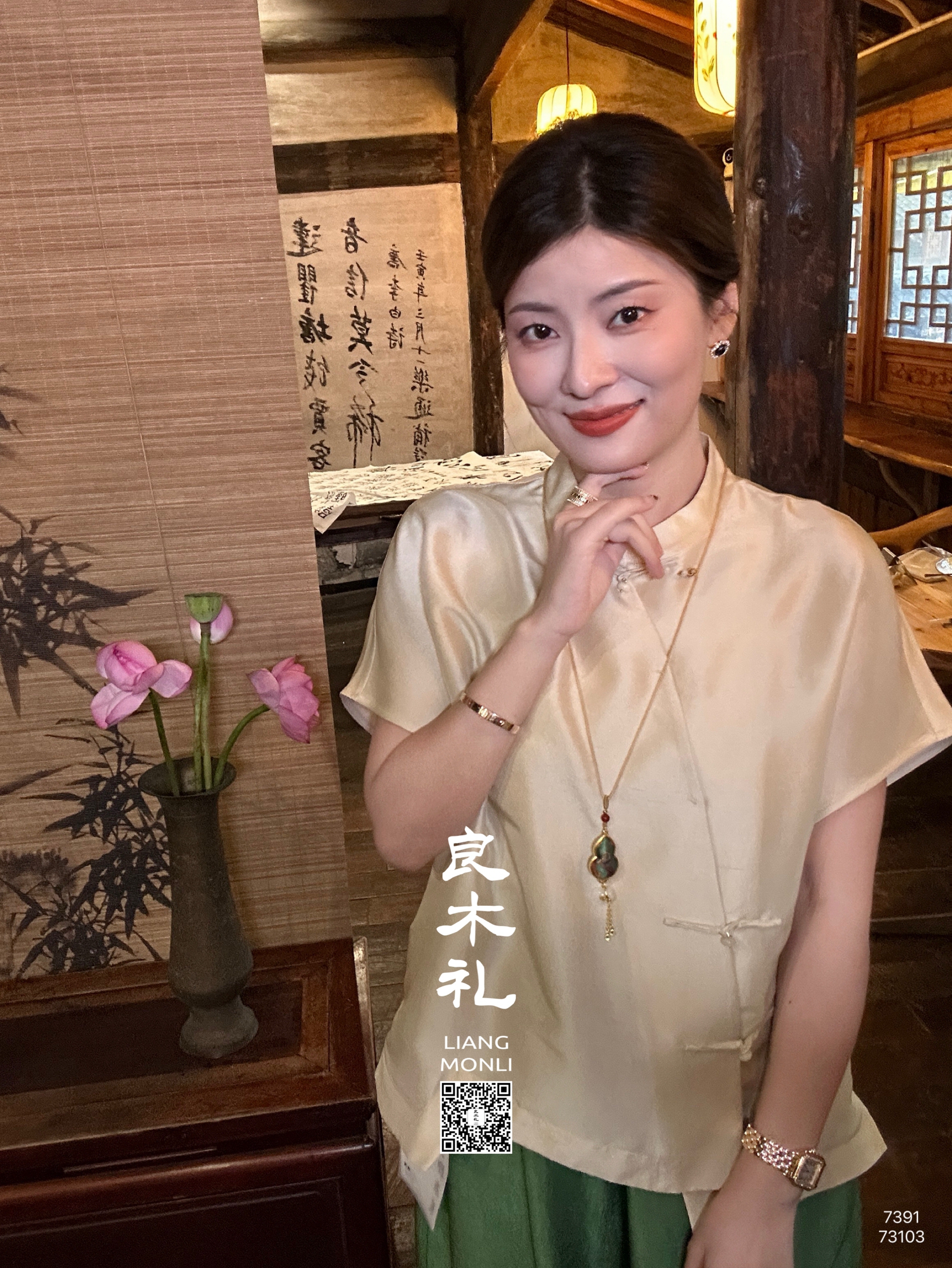 【预售7天】良木礼真丝双宫上衣(X7391)