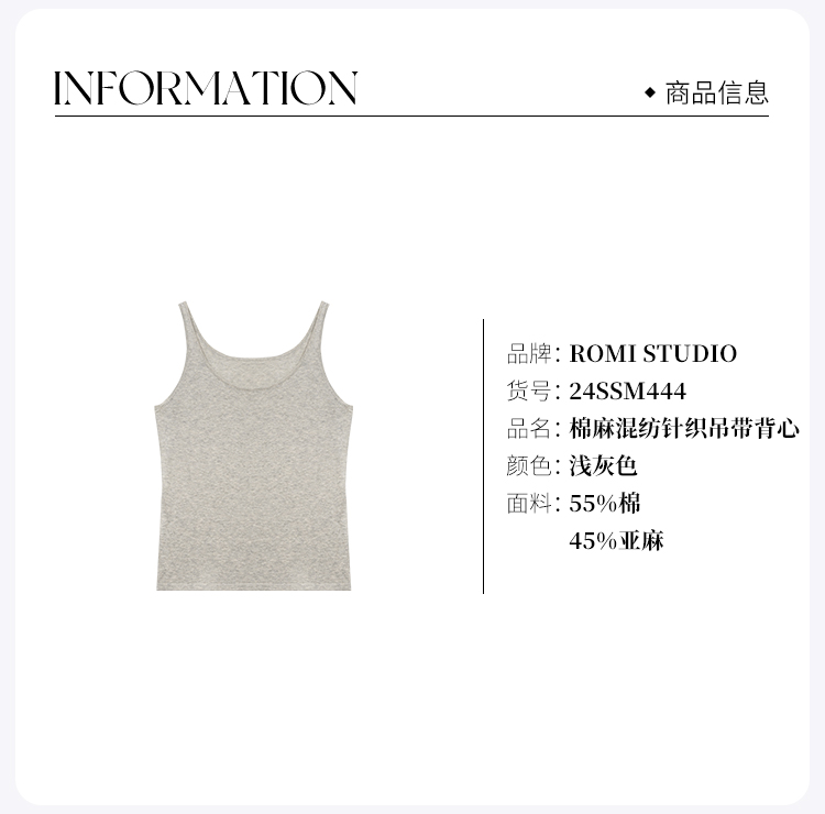 ROMI STUDIO”裸肤挚爱“16针单边棉麻混纺针织吊带背心 24SSM444