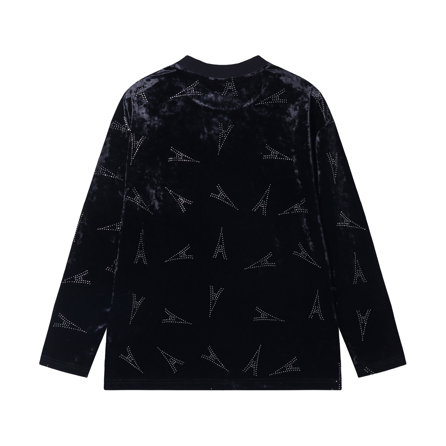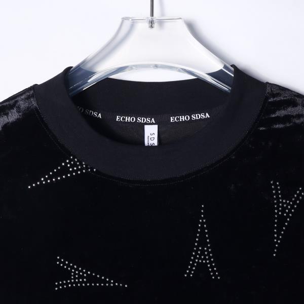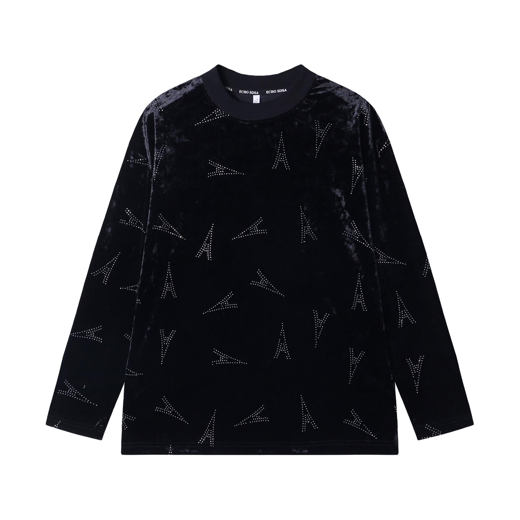 T1874秋季新款时尚个性绒面烫钻圆领长袖T恤休闲百搭潮流运动上衣