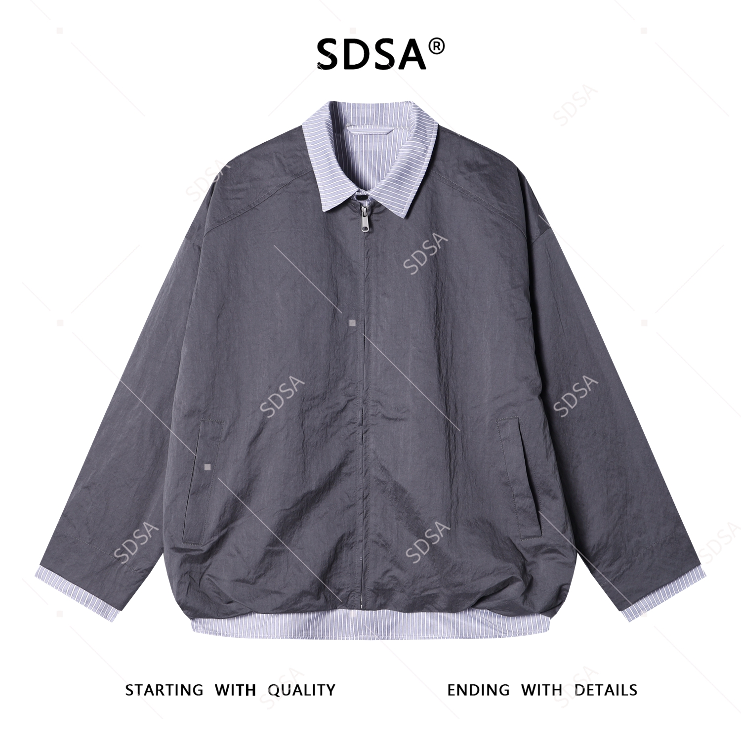 SDSA男士秋冬新款痞帅男装韩版美式拼接翻领拉链假两件夹克外套潮