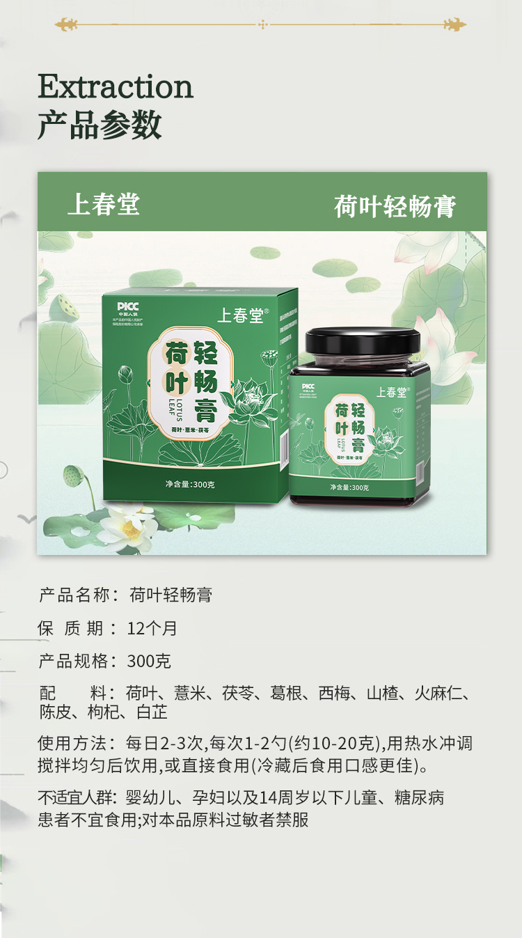 上春堂荷叶轻畅膏甄选荷叶薏米茯苓匠心熬制官方正品健脾祛湿气