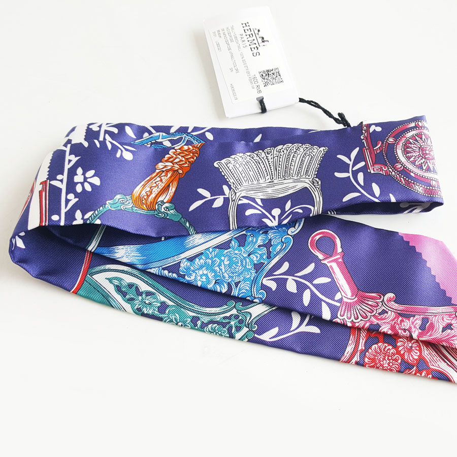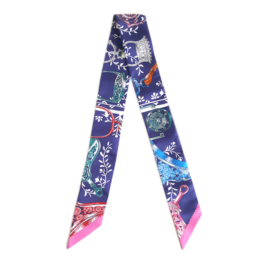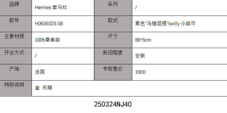 【全新】Hermes爱马仕 紫色“马镫混搭”twilly小丝巾 250324NJ40