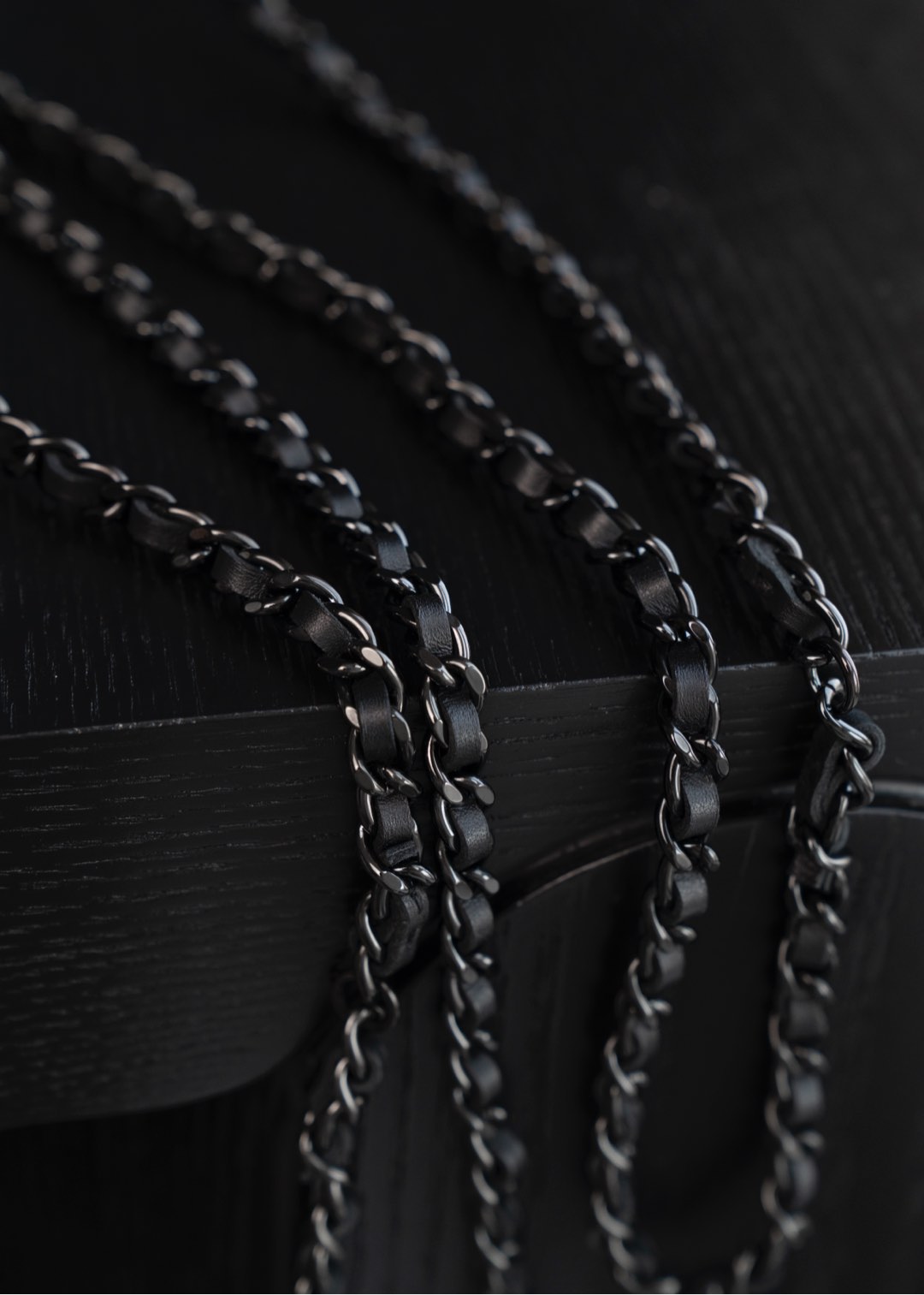 亮面枪色五金配件⛓️做了多次高温烘烤和打磨的烤漆工艺、工艺成熟、保色度高‼️ 光泽感十足且低调奢华✨全黑色系满满的高级感〰️