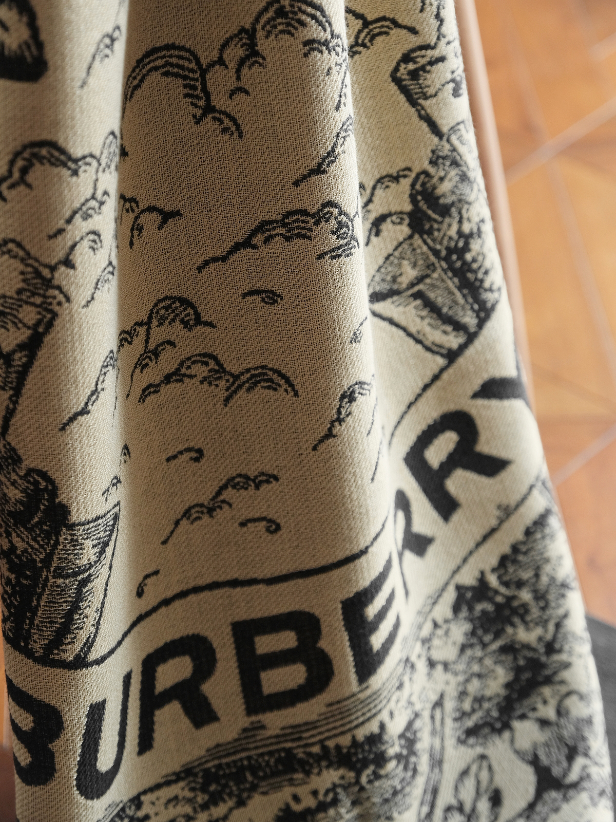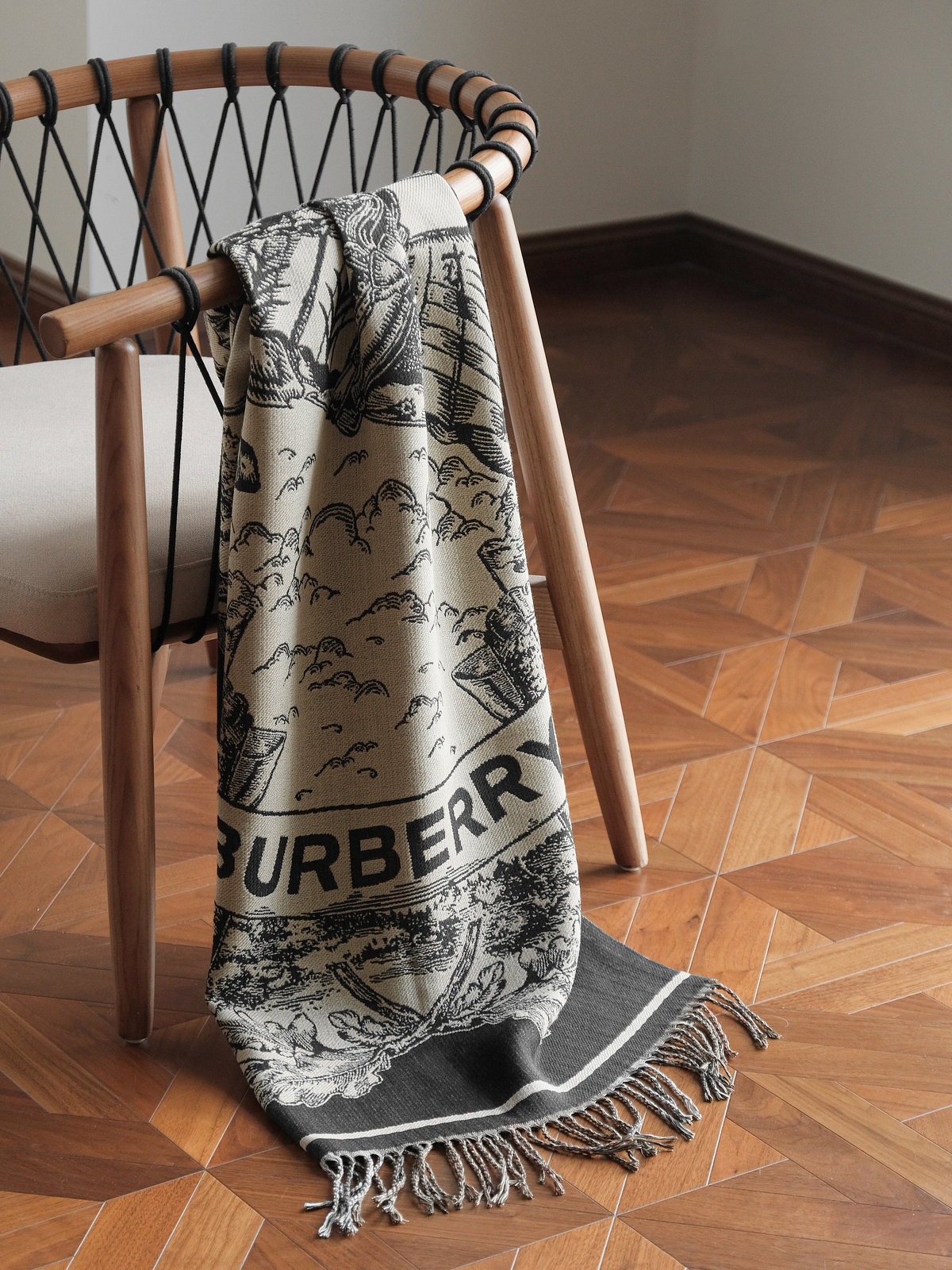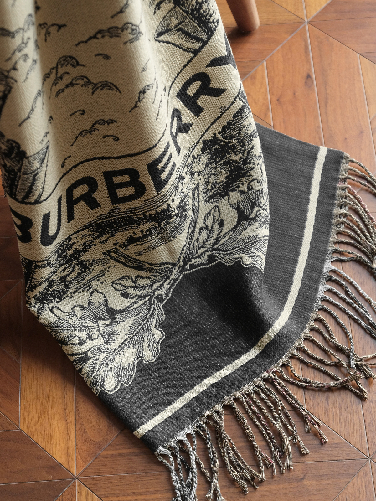 WJ07-巴宝莉 马术骑士徽标 双面 羊绒提花 绒线围巾 女款 (QZ*MM)