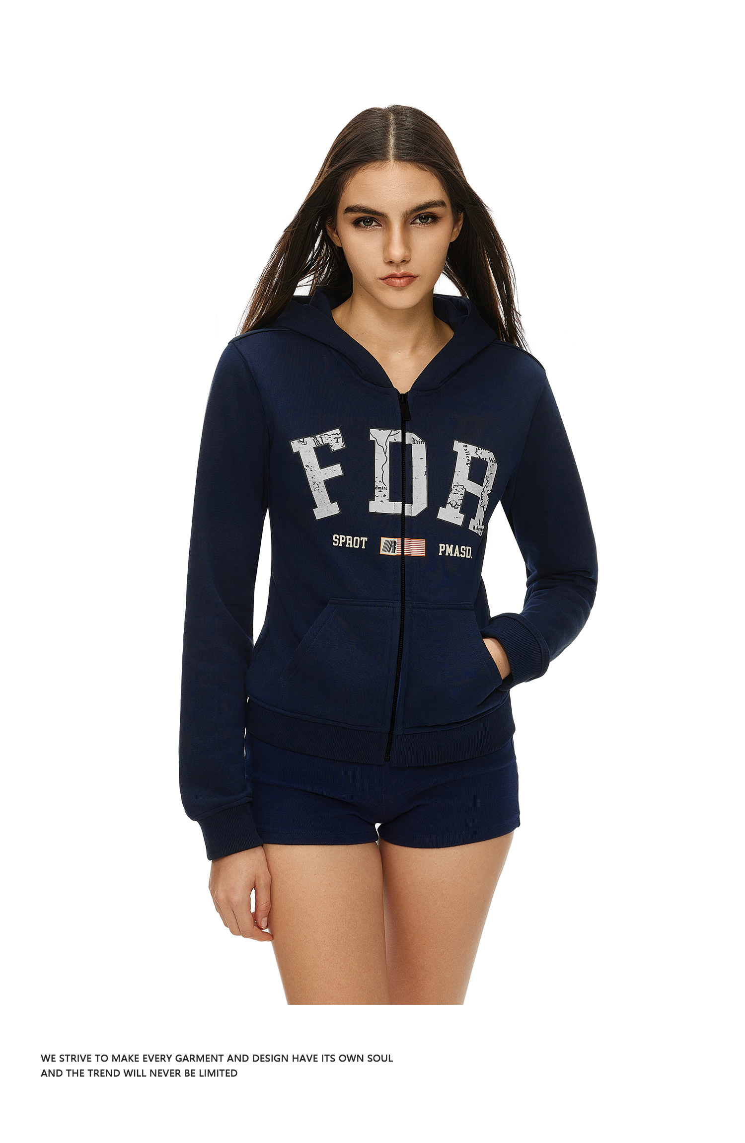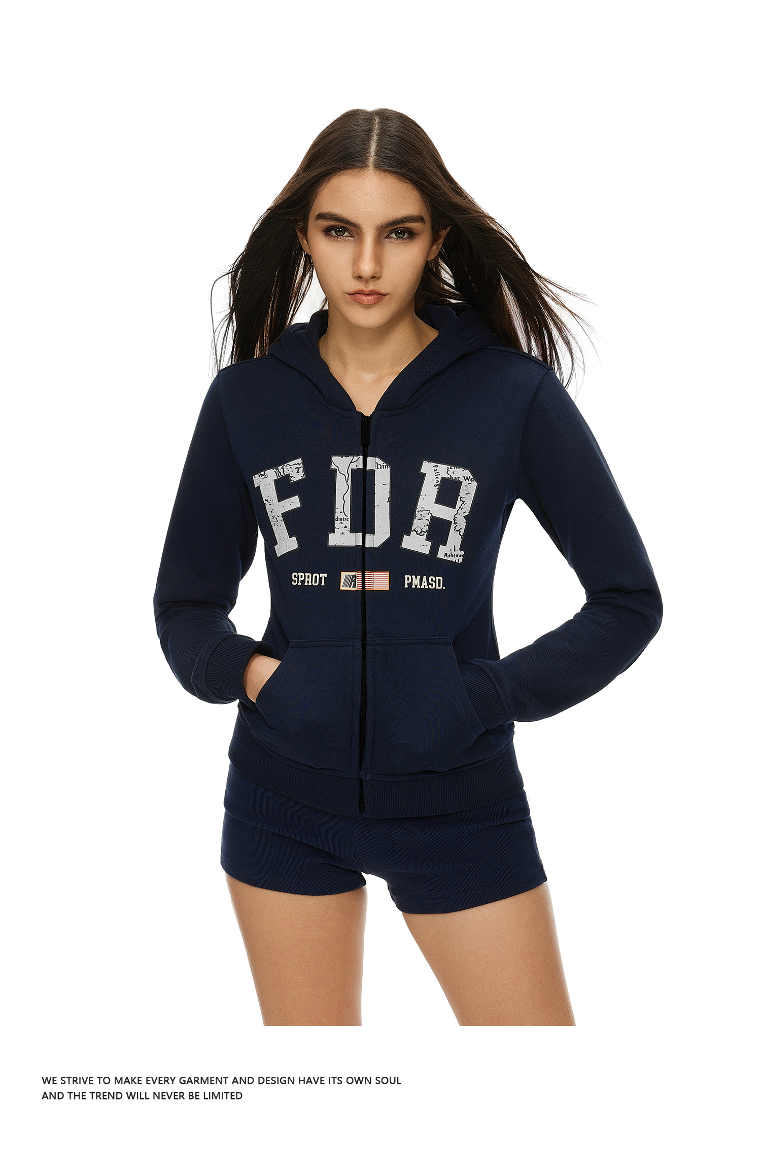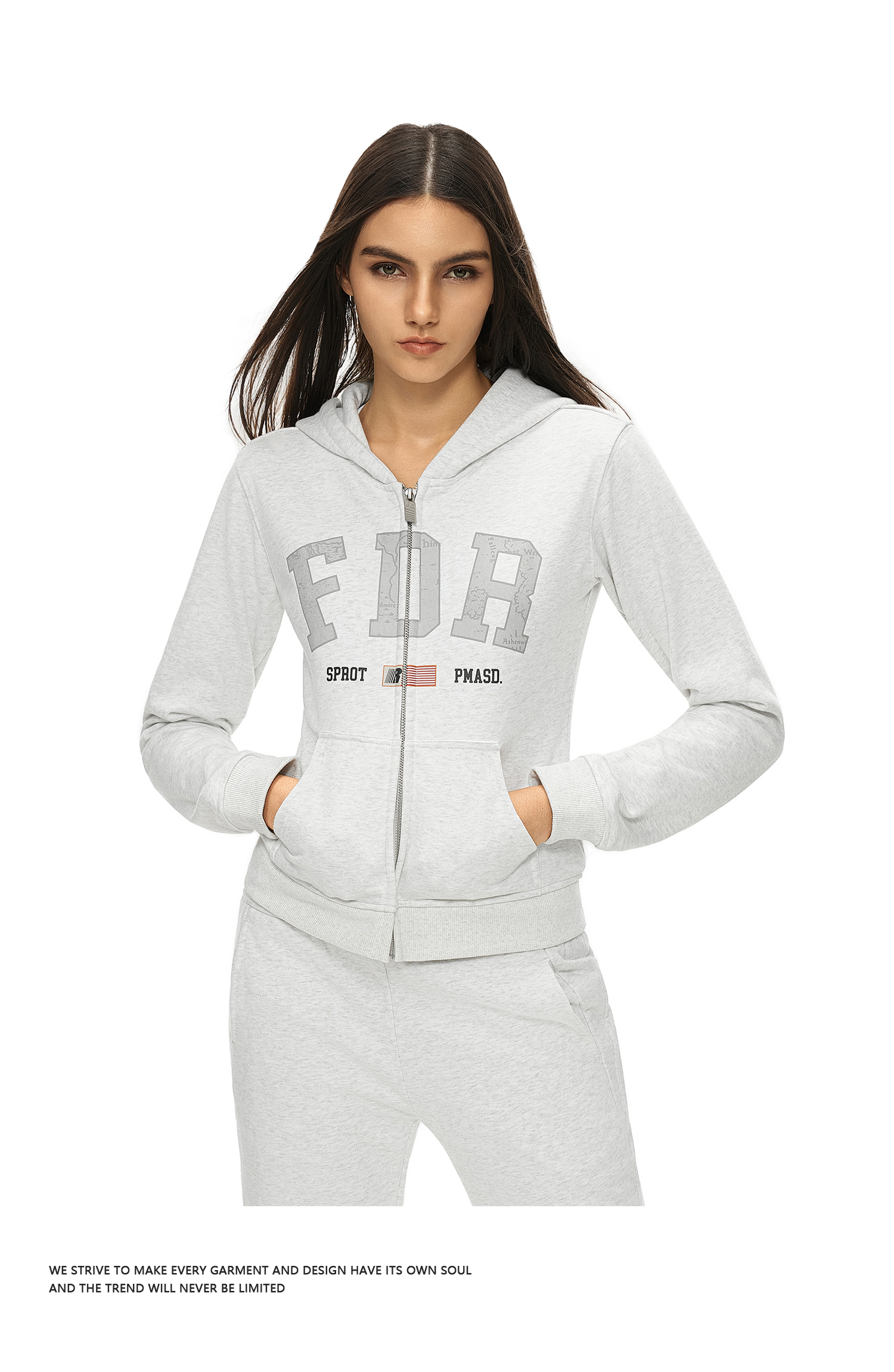 FDR官方店 美式复古logo印花拉链卫衣女秋季修身显瘦上衣开衫外套