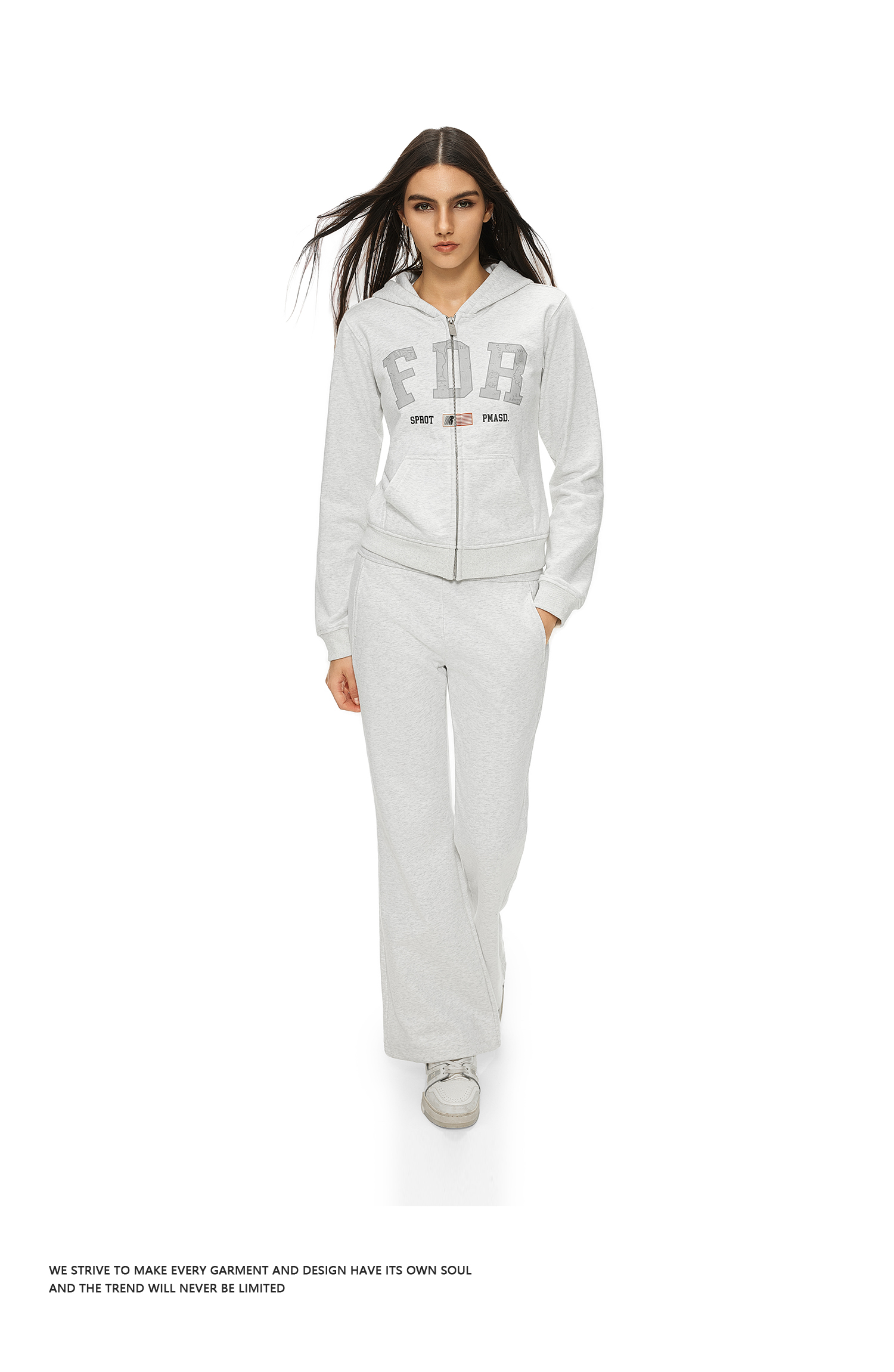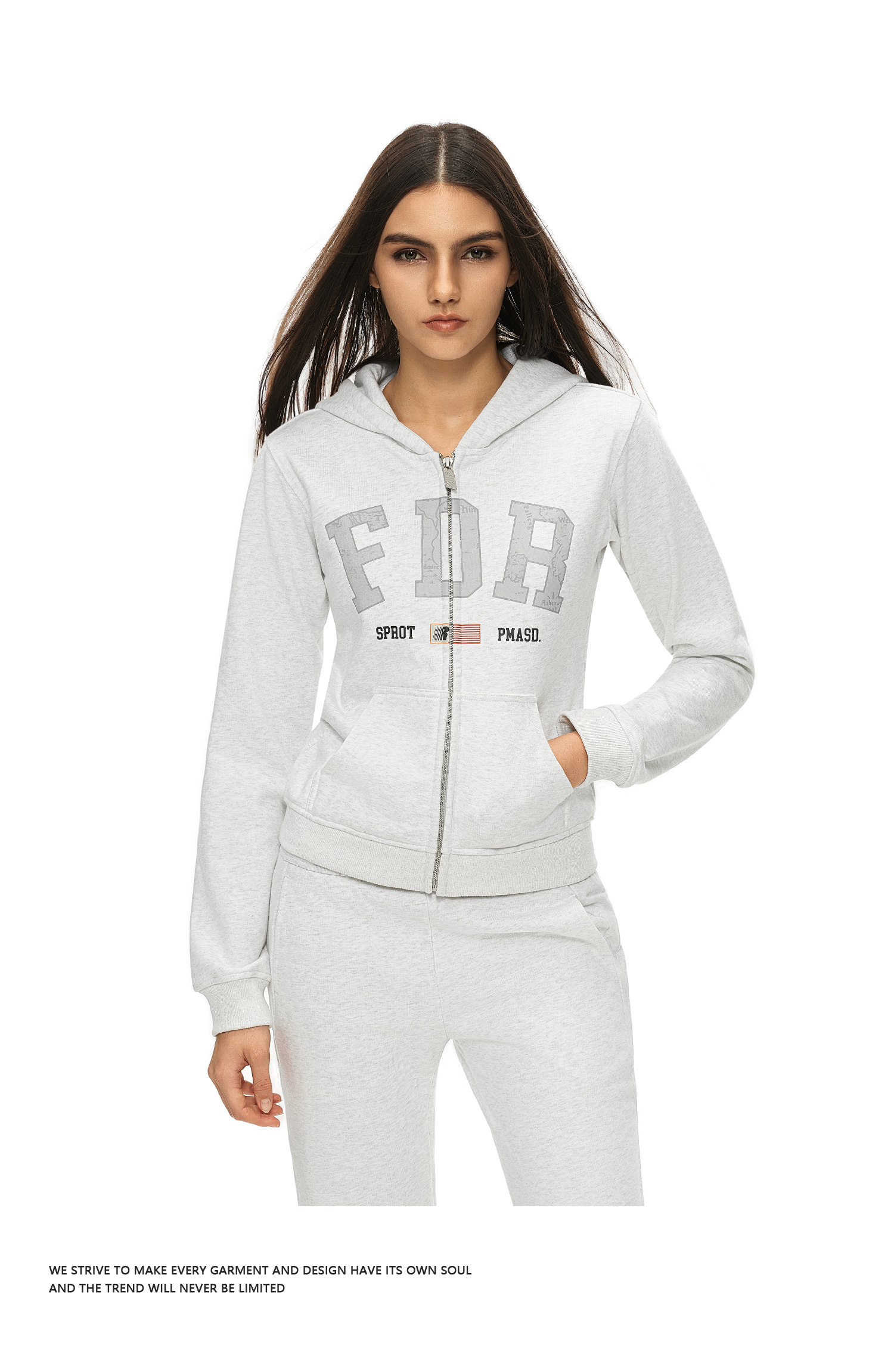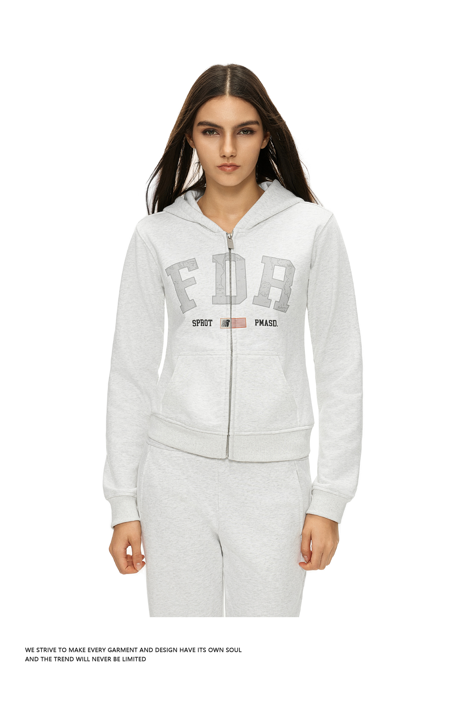FDR官方店 美式复古logo印花拉链卫衣女秋季修身显瘦上衣开衫外套