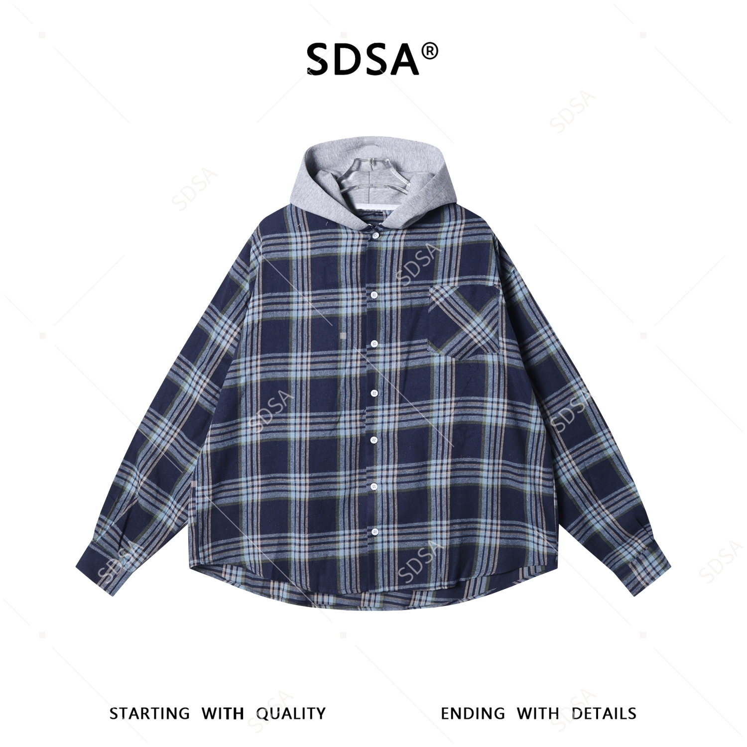 SDSA男装2026新款高贵轻奢休闲文艺连帽格纹衬衫百搭时尚简约衬衣